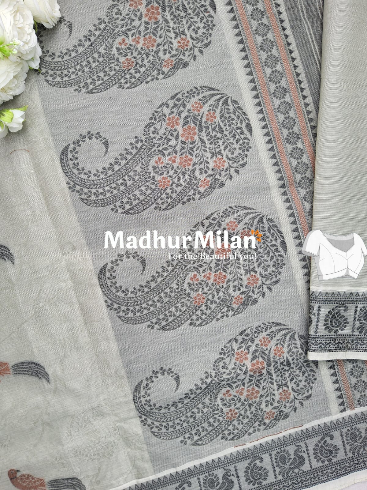 This border adds a touch of elegance and frames the saree beautifully. Perfect for both casual and formal occasions, this Suti Parrot Weaving Border Cotton Saree is a versatile addition to your wardrobe.
