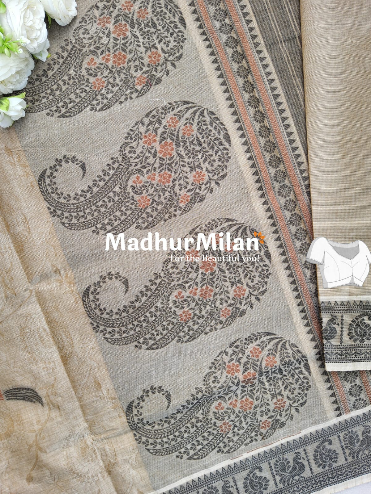 Elevate your ethnic wardrobe with this exquisite SUTI PARROT WEAVING BORDER COTTON SAREE in a sophisticated beige shade. This saree, brought to you by Madhur Milan, is a perfect blend of tradition and contemporary style.