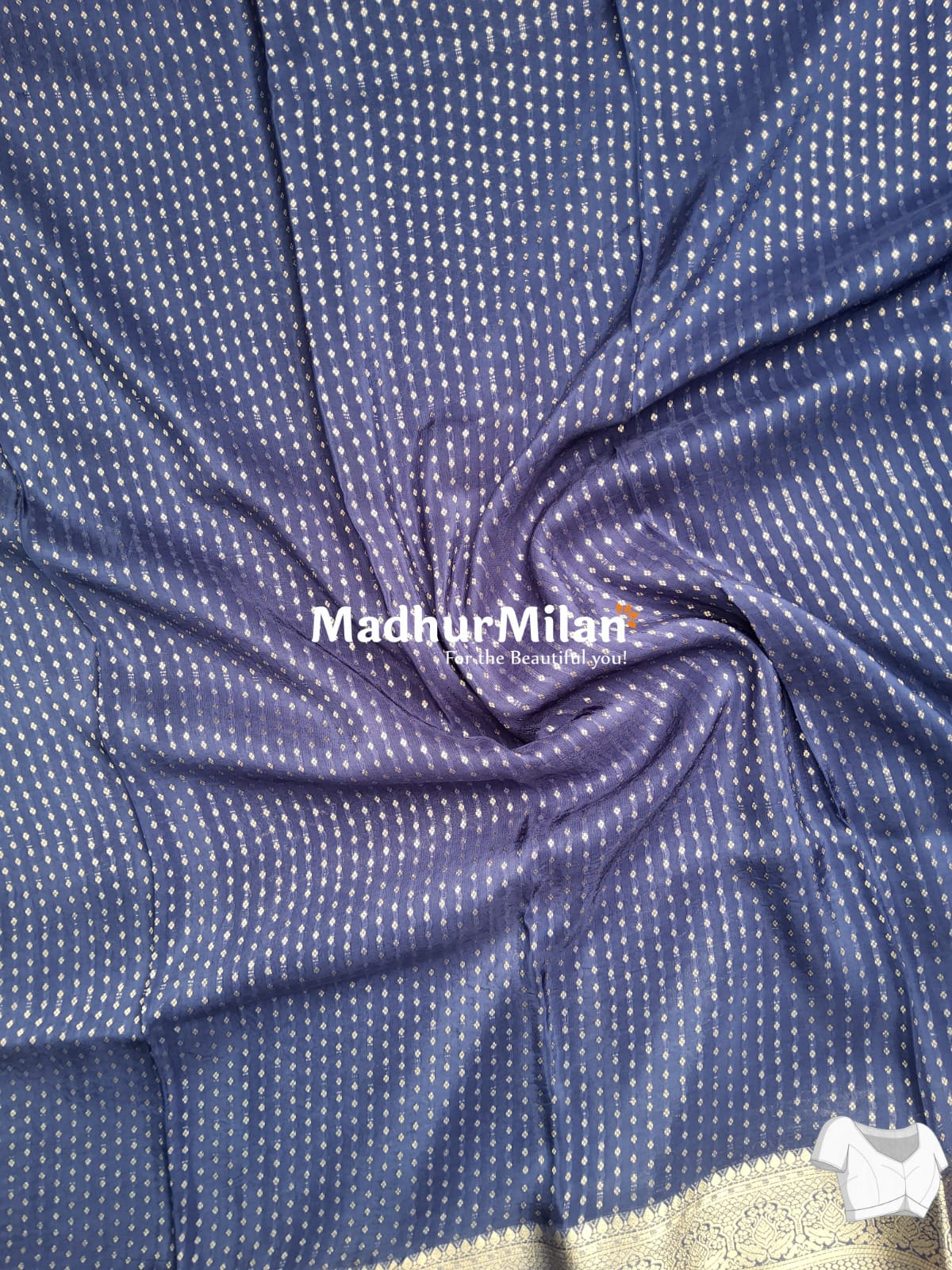MARVI BANARASI SELF EMBOSS CREPE SILK SAREE NAVY BLUE Elevate your ethnic wardrobe with this exquisite Marvi Banarasi Self Emboss Crepe Silk Saree in a regal Navy Blue shade. This masterpiece from Madhur Milan is crafted for the beautiful you, combining traditional artistry with contemporary elegance.