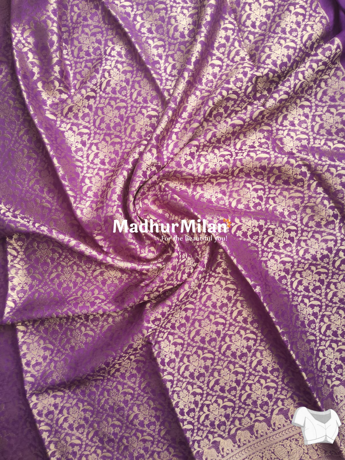 Product Name: MISAKI BANARASI CREPE SILK SAREE LIGHT PURPLE Description: Elevate your ethnic wardrobe with the exquisite MISAKI BANARASI CREPE SILK SAREE in a captivating light purple hue. This stunning saree from Madhur Milan is a perfect blend of tradition and elegance, designed to make you feel beautiful and confident.