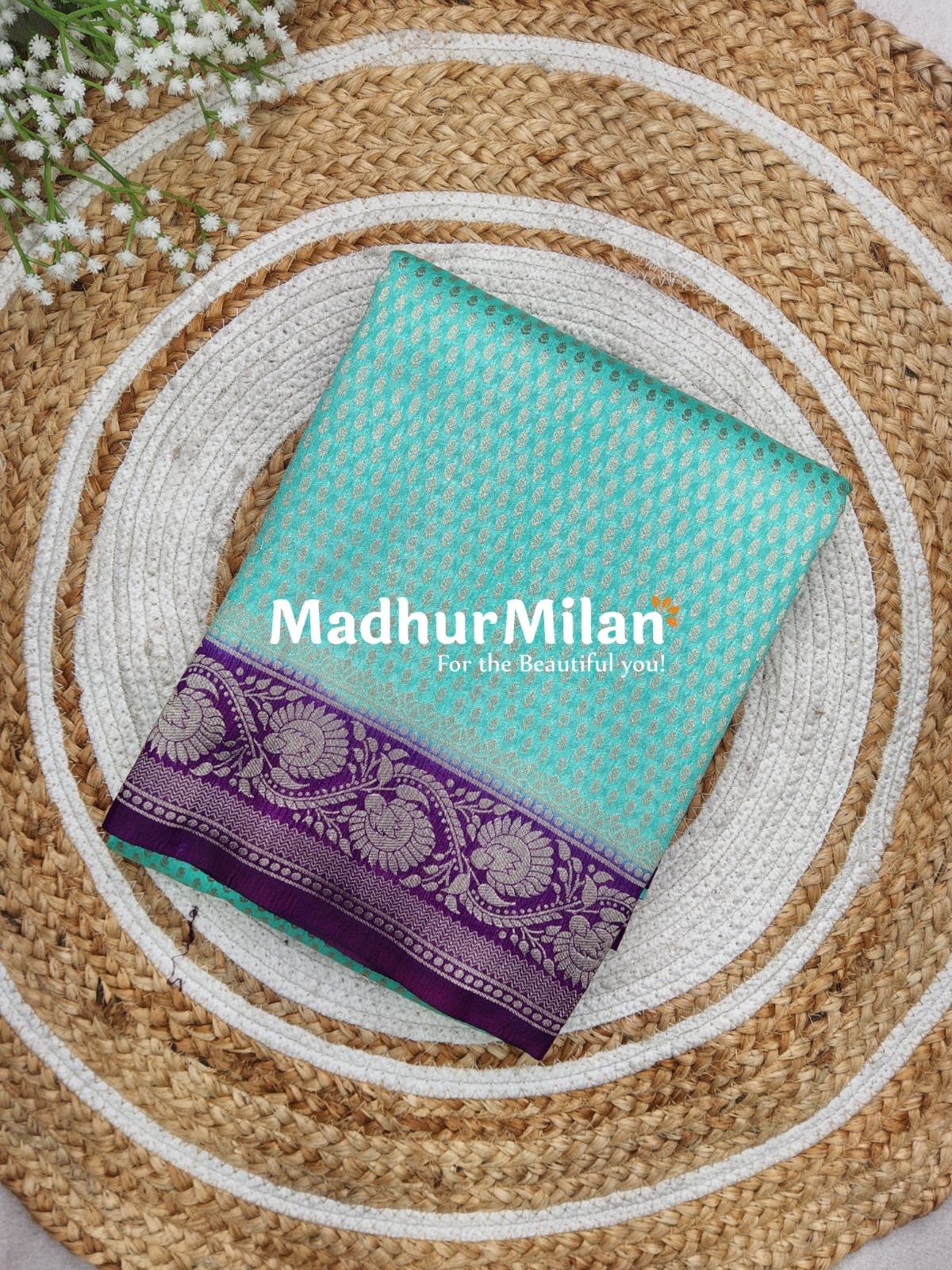 Product Description: BANARASI SEMI GEORGETTE SAREE TURQUOISE PURPLE