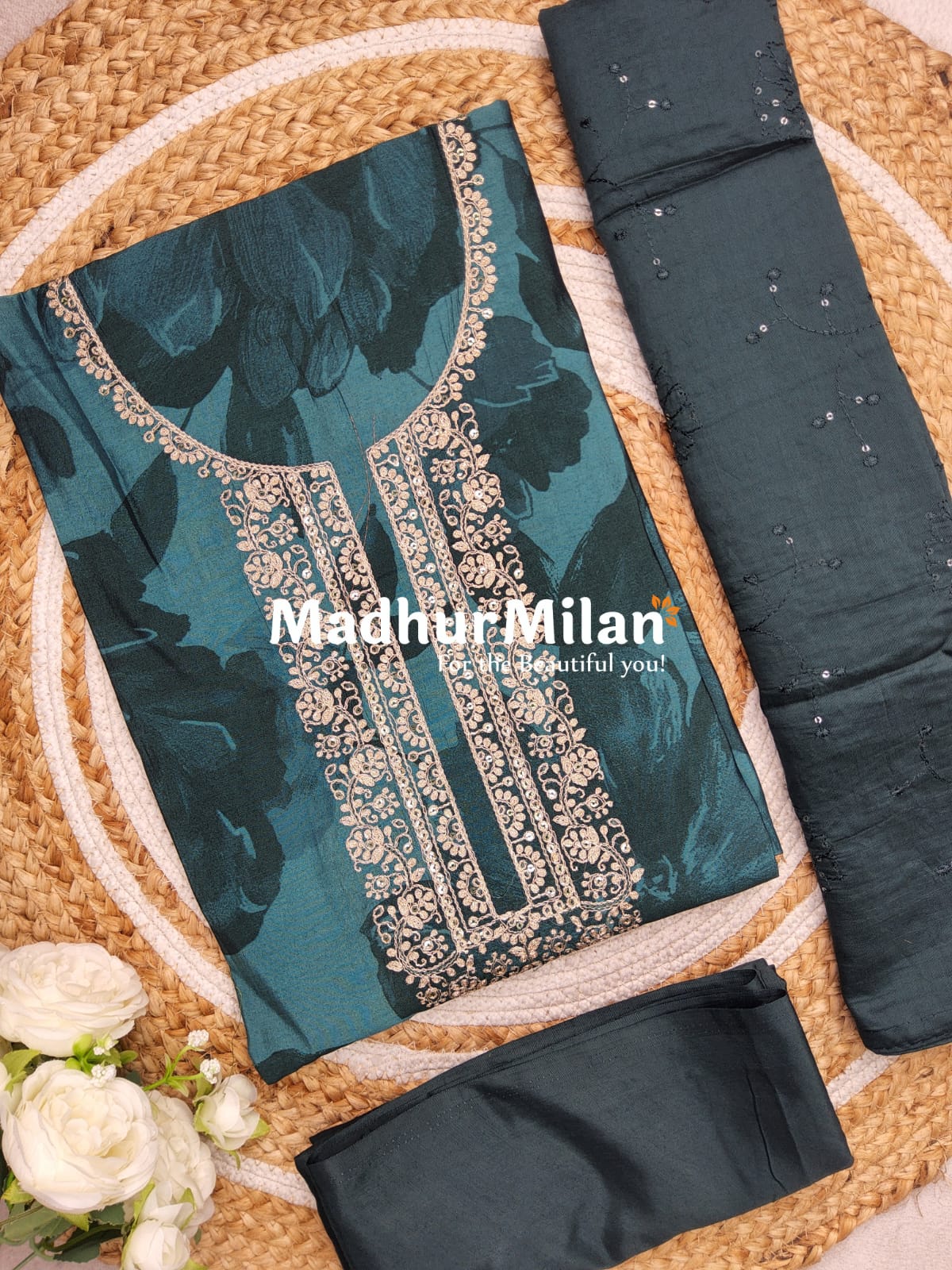 Contents: - 1 Embroidered Kameez - 1 Salwar - 1 Dupatta