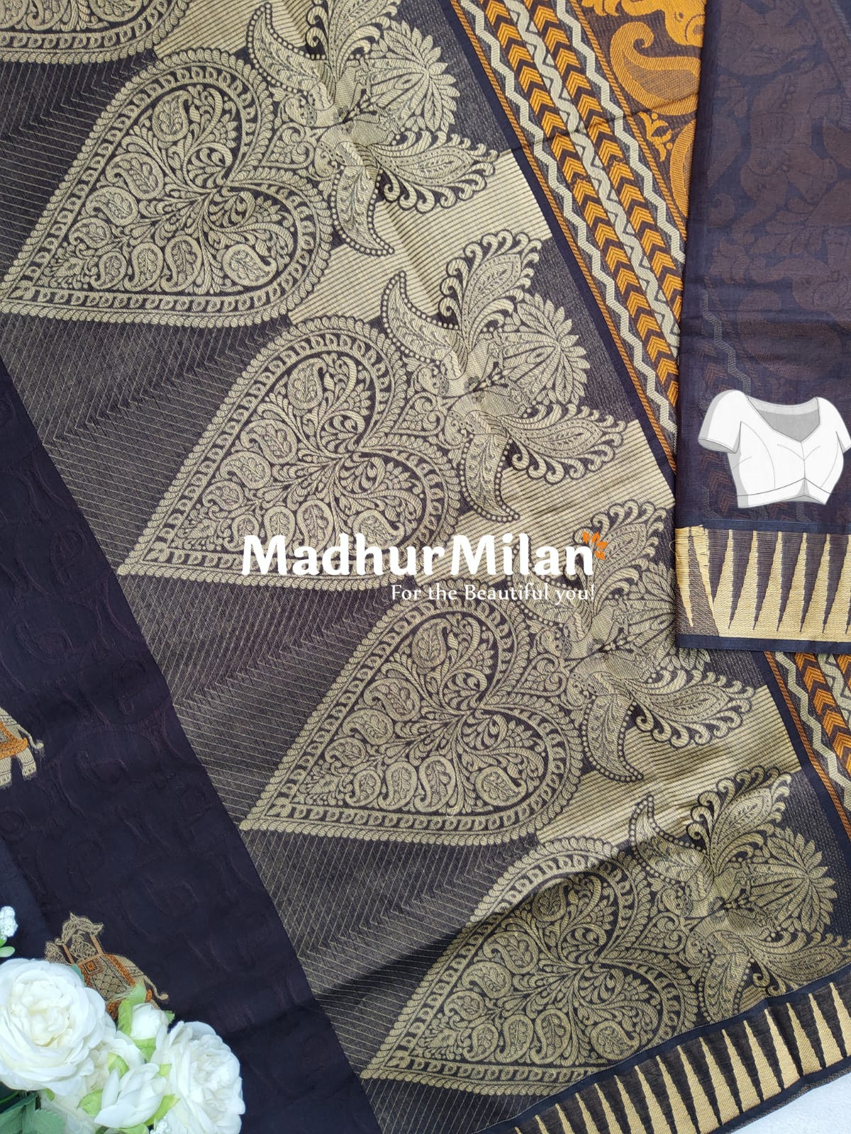 Perfect for those who appreciate the artistry of traditional Indian textiles, this Madhur Milan saree is a testament to the beauty of handcrafted elegance. Whether you're attending a wedding, festival, or any special occasion, this saree is sure to make you stand out with its unique design and impeccable quality.