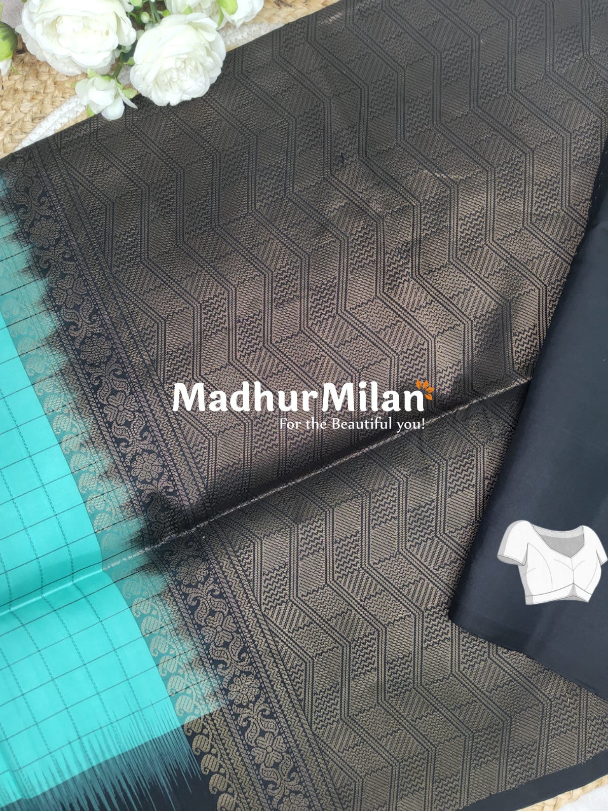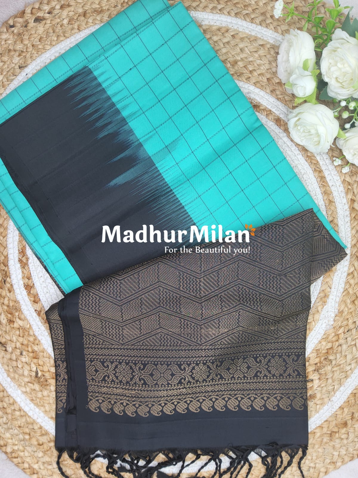 UPPADA SOFT SILK SAREE AQUA GREEN BLACK