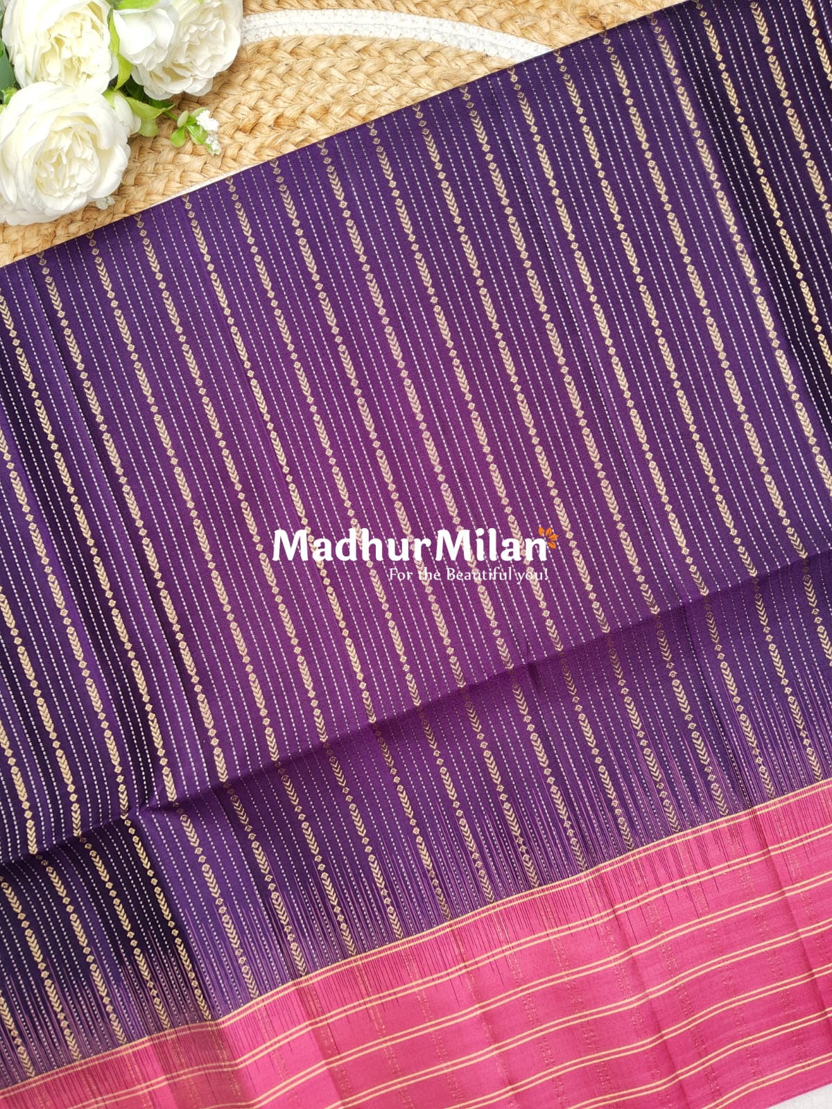 7. Finish: Elegant pink fringes at the end of the pallu This Poorvika Uppada soft silk saree is perfect for special occasions, festivals, and formal events. Its unique color combination and intricate zari work make it a standout piece in any wardrobe. The contrast between the violet body and pink border creates a visually striking effect that's sure to turn heads. Drape yourself in the timeless beauty of this Uppada silk saree and experience the perfect fusion of tradition and contemporary style. With Madhur Milan, you're not just wearing a saree; you're adorning yourself with a piece of art that celebrates the beautiful you.