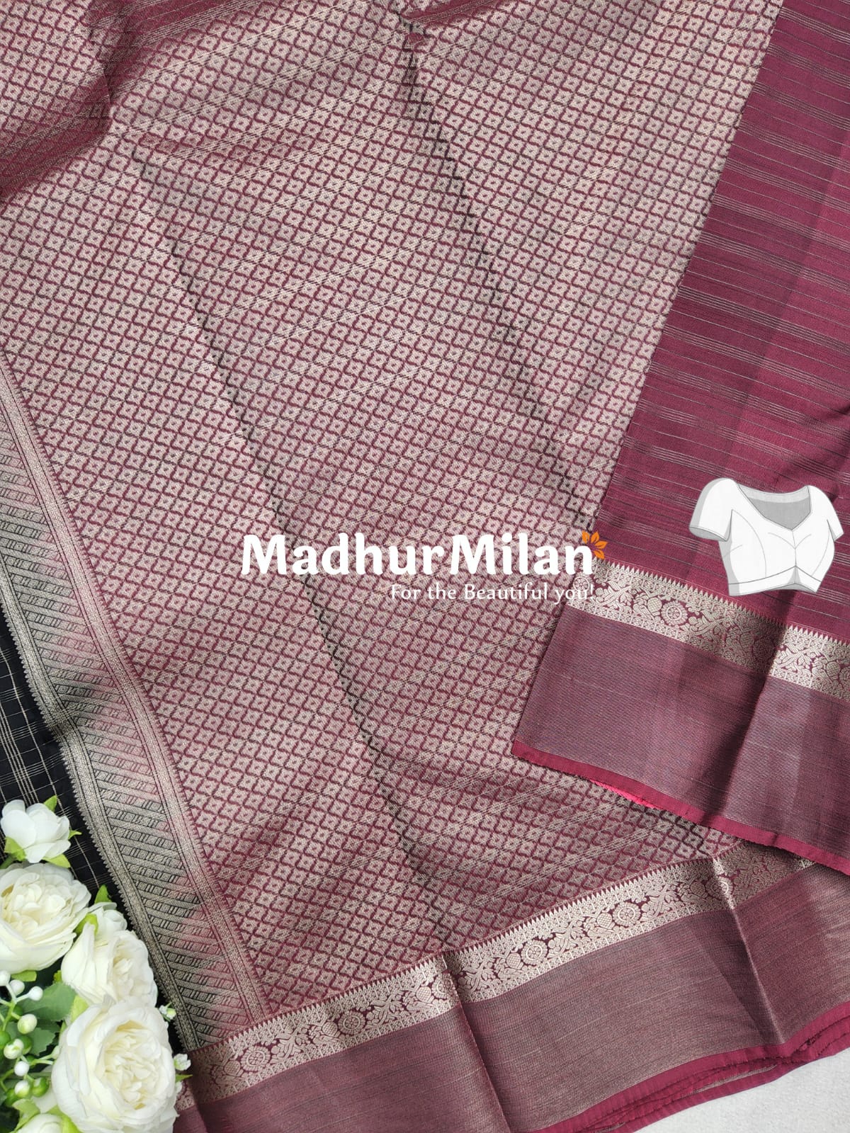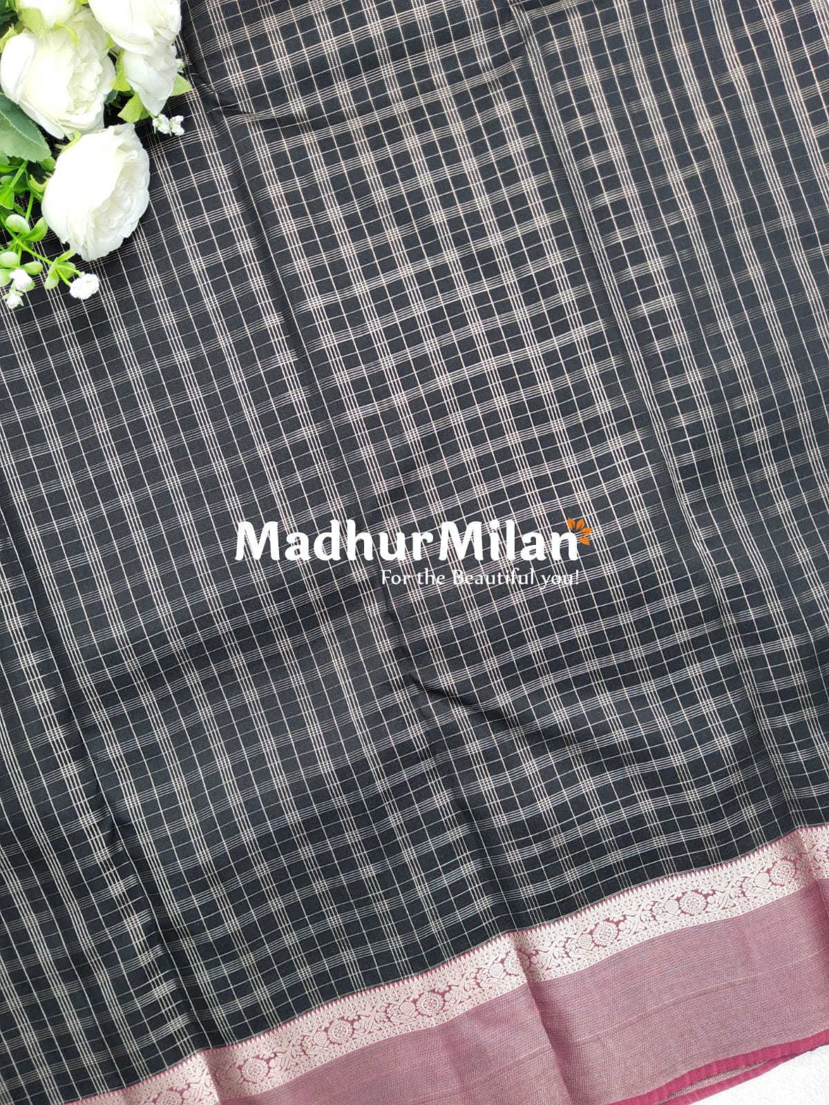 Description: Introducing the exquisite KANCHI SMALL CHECKS BLACK ONION PINK saree from Madhur Milan, a perfect blend of tradition and elegance.