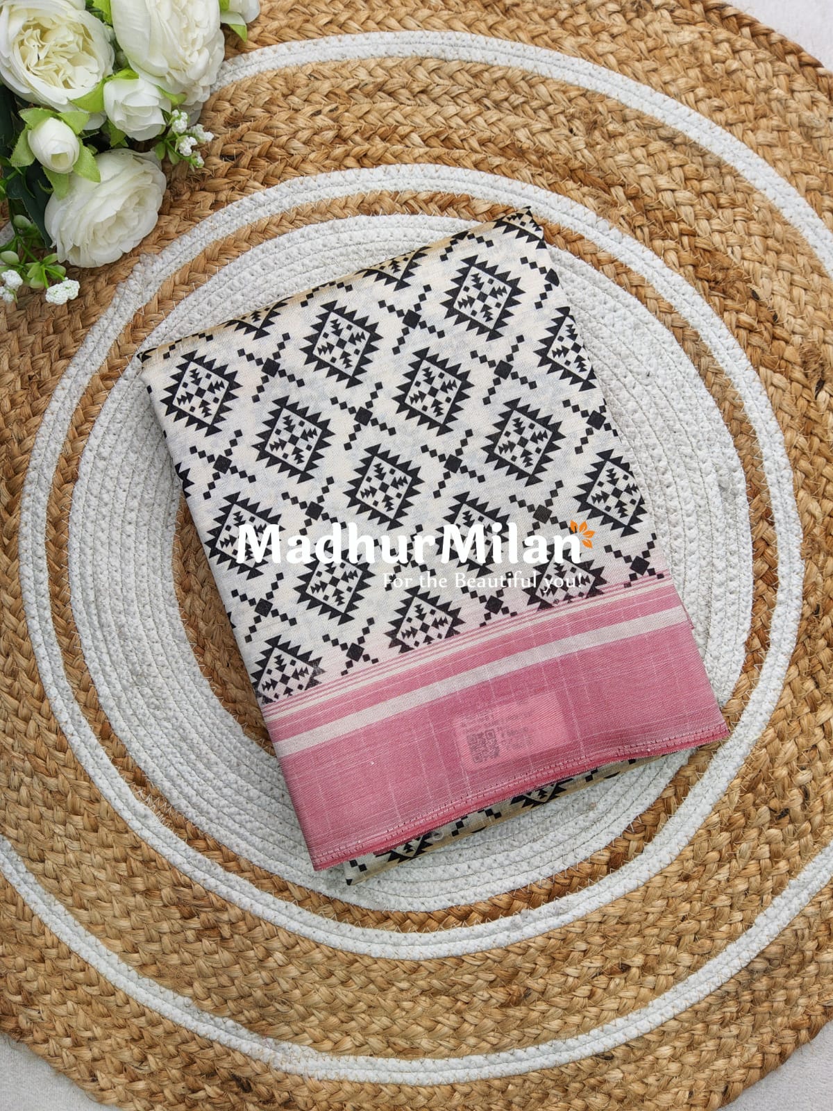 4. Versatility: Suitable for weddings, festivals, formal events, and special occasions Pattern Details: - The body features large, elegant white paisley designs on a charcoal black background - The border showcases a stunning red base with intricate white floral patterns and leaf motifs - Geometric black patterns add a modern touch to the traditional design