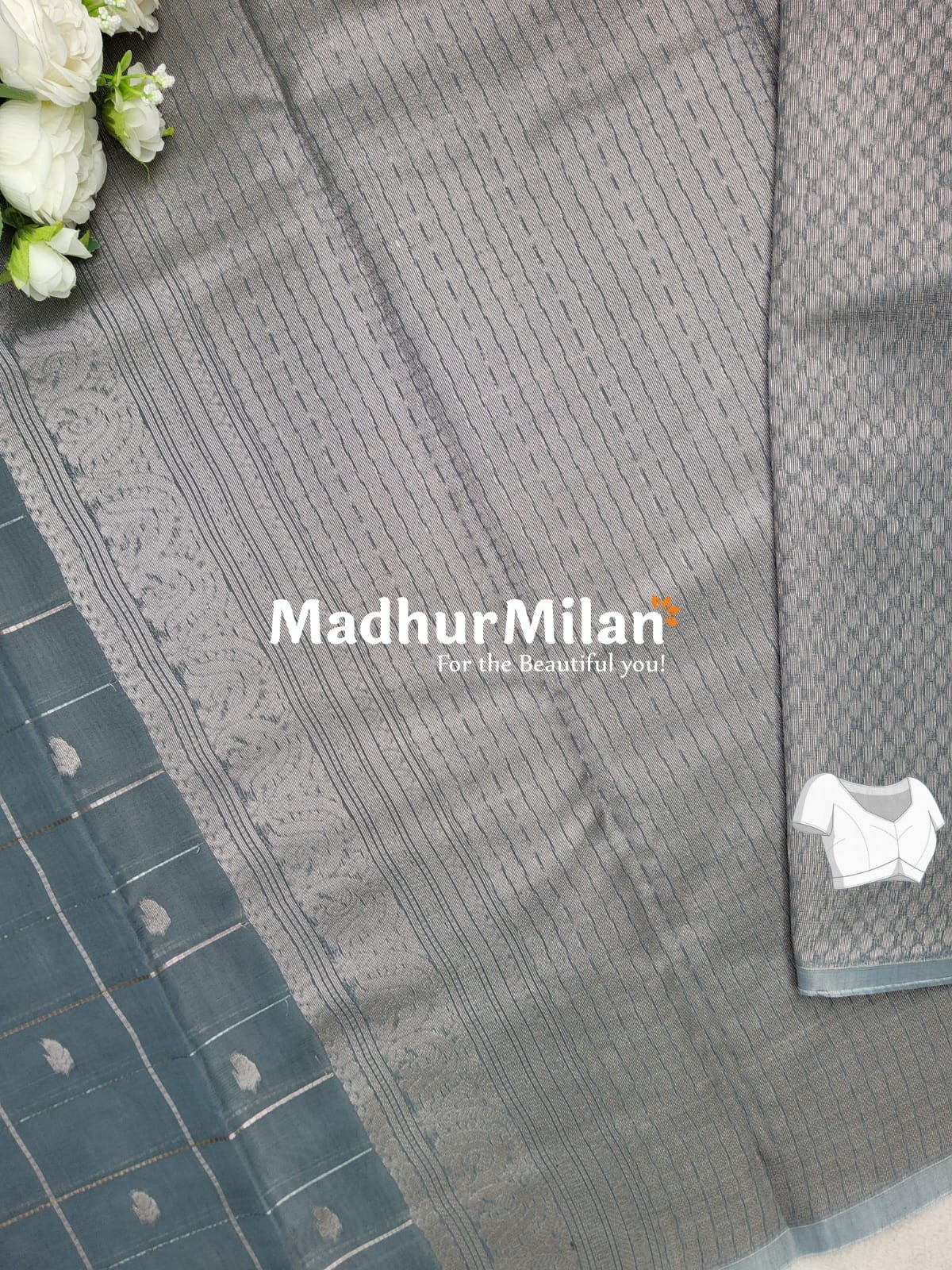 This stunning saree, brought to you by Madhur Milan, is a perfect blend of tradition and contemporary style.