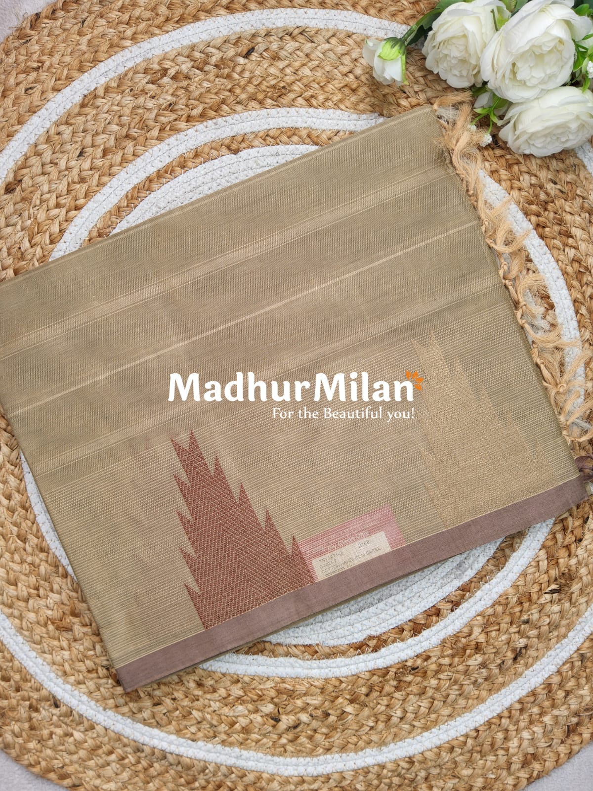 Description: Elevate your ethnic wardrobe with this exquisite SUTI TEMPLE BUTTA BORDER COTTON SAREE in a sophisticated Light Khaki shade.