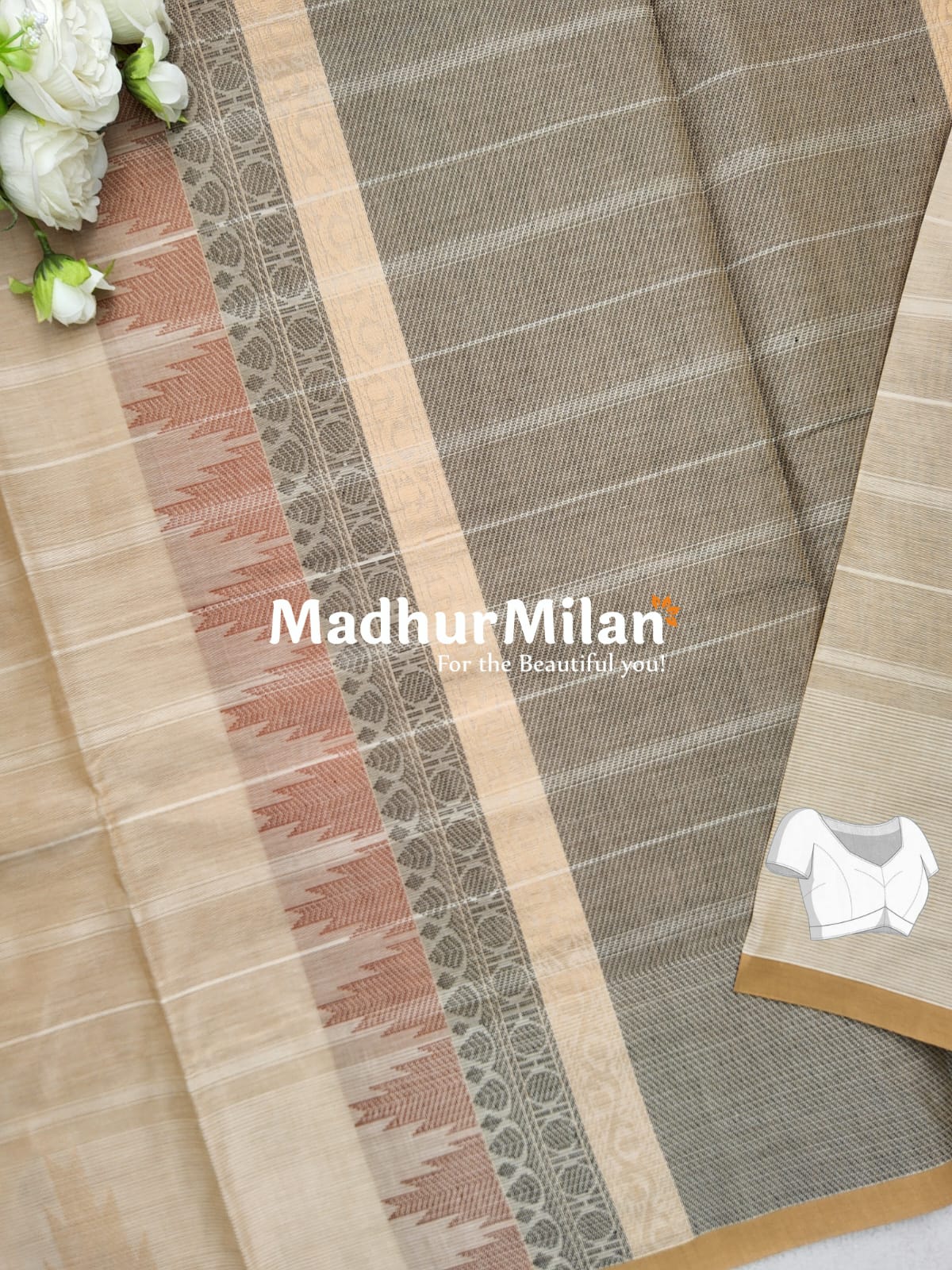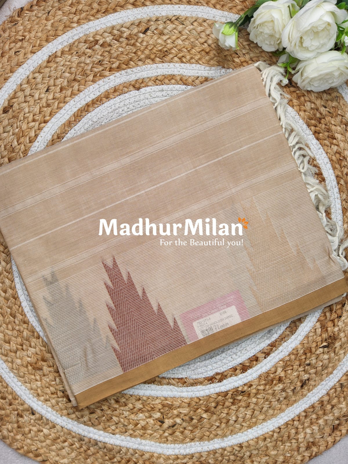 Product Listing: SUTI TEMPLE BUTTA BORDER COTTON SAREE BEIGE