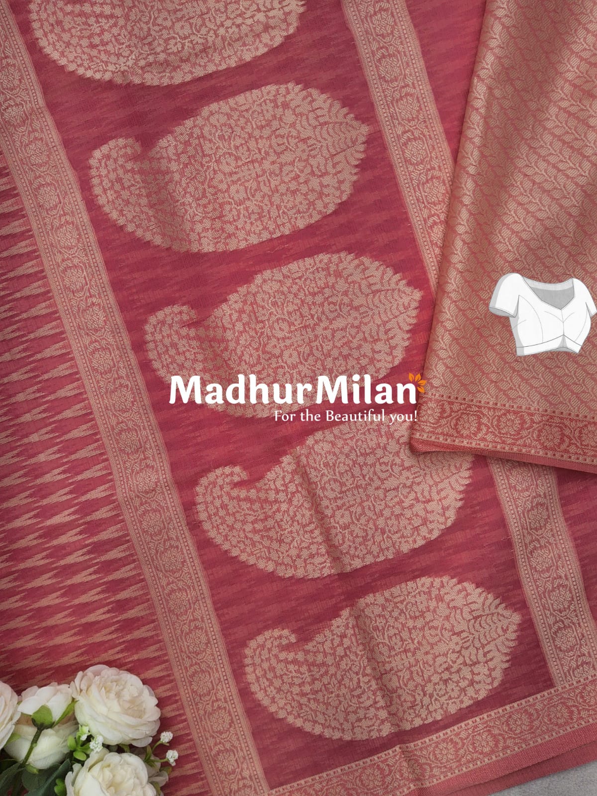 Description: Elevate your ethnic wardrobe with this exquisite Swiss Cotton Saree in a captivating pink hue. Crafted by Madhur Milan, this saree is designed "For the Beautiful you!"