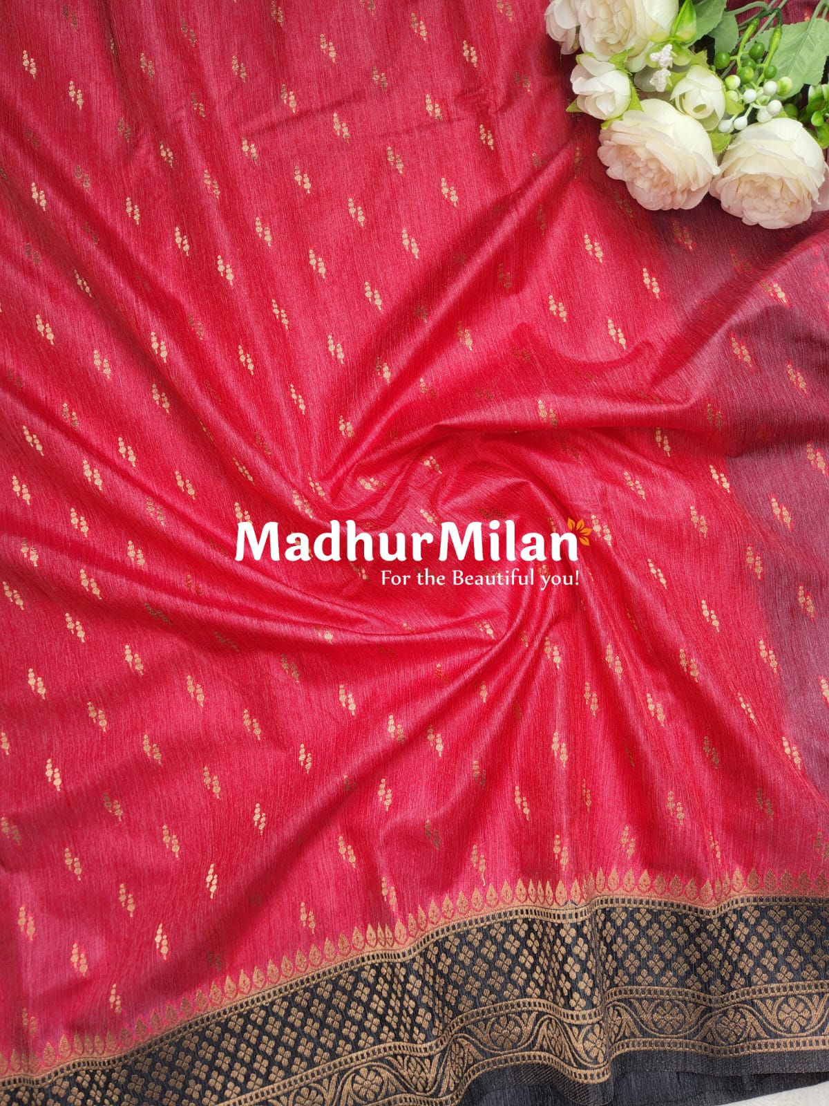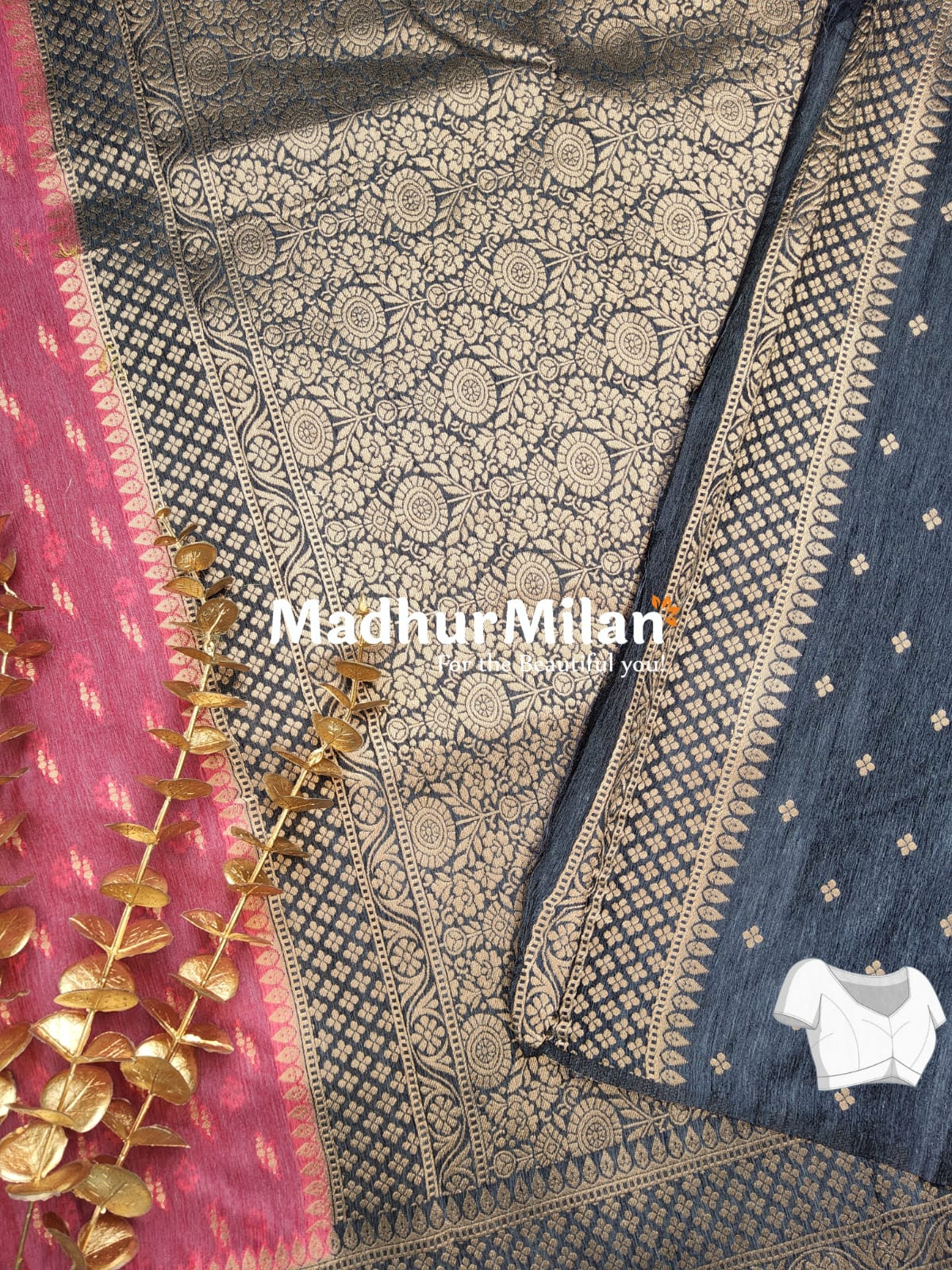 Complete your look with the included matching blouse piece, allowing you to create a coordinated and stunning ensemble. Embrace the beauty of traditional Indian textiles with this Madhur Milan creation – "For the Beautiful you!"