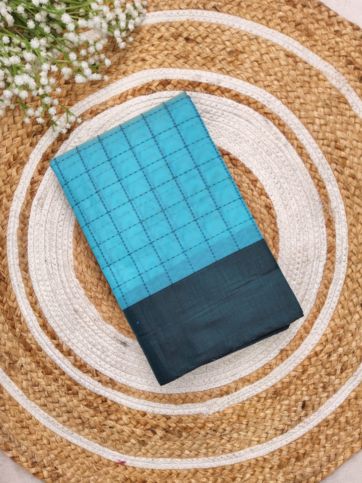 3. Design: Features a striking check pattern that adds depth and visual interest to the saree.