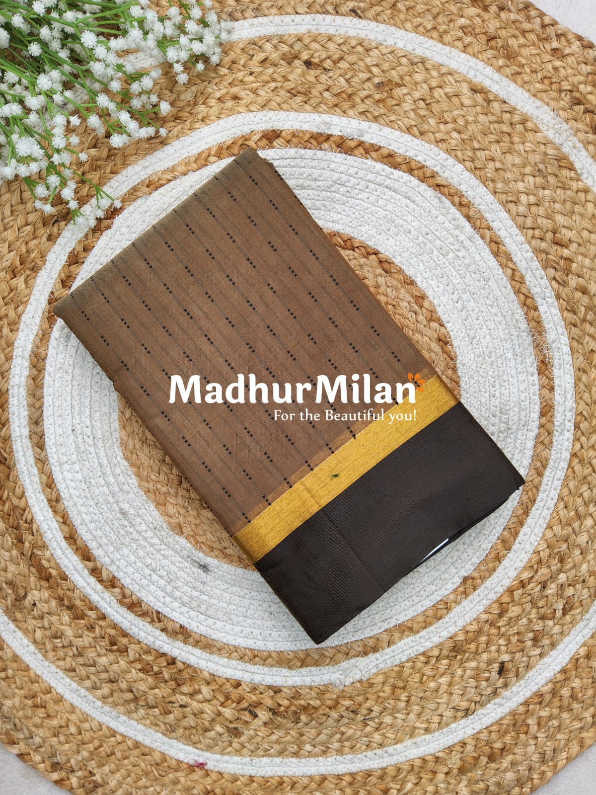 As part of the Madhur Milan collection, this saree embodies the brand's commitment to quality and style, living up to their motto "For the Beautiful you!" Whether you're attending a family gathering, a formal event, or simply want to make a statement at work, this KOVAI SILK COTTON SAREE BROWN is the perfect choice to showcase your refined taste and cultural appreciation.