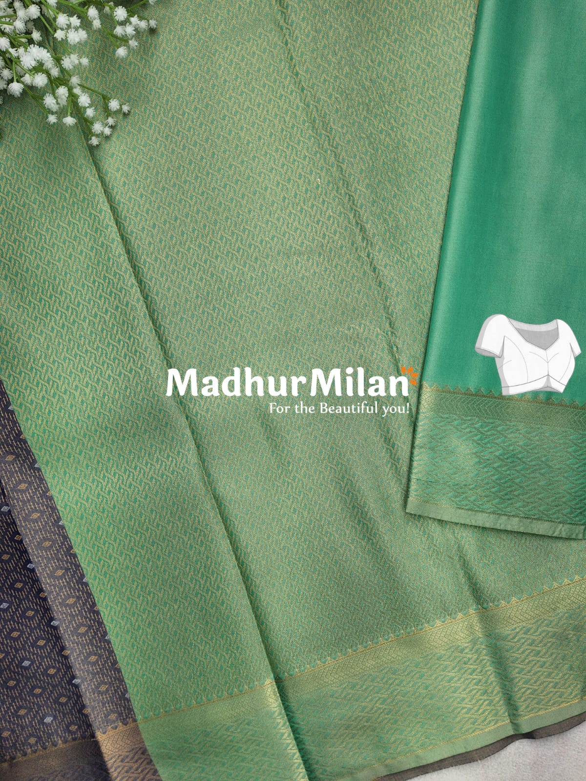 Description: Elevate your ethnic wardrobe with the exquisite RUBY TUSSER SILK SAREE GREY GREEN from Madhur Milan.