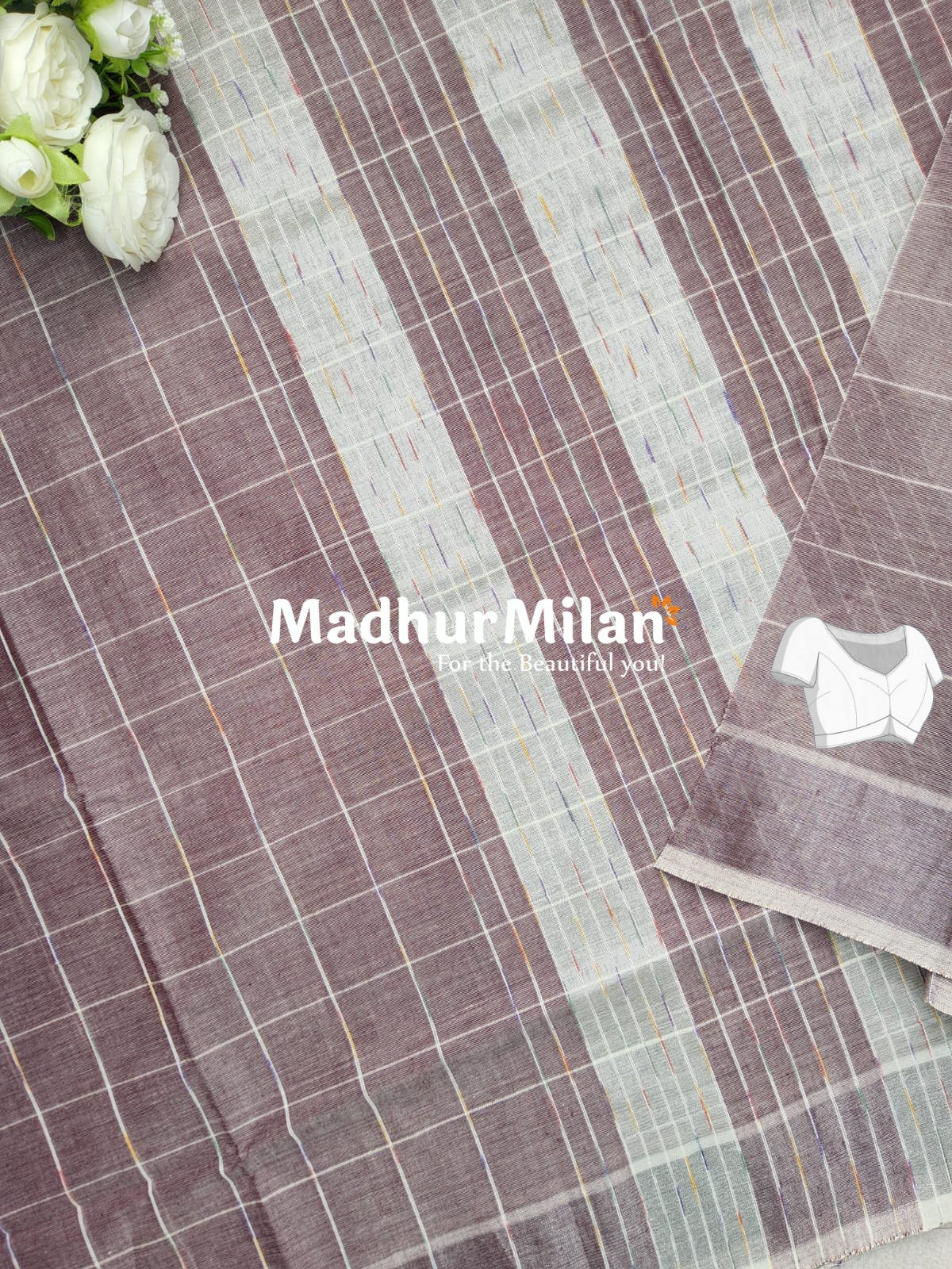 Description: Introducing the exquisite BENGALI CHECKS COTTON SAREE in a captivating Dusty Onion shade, brought to you by Madhur Milan.