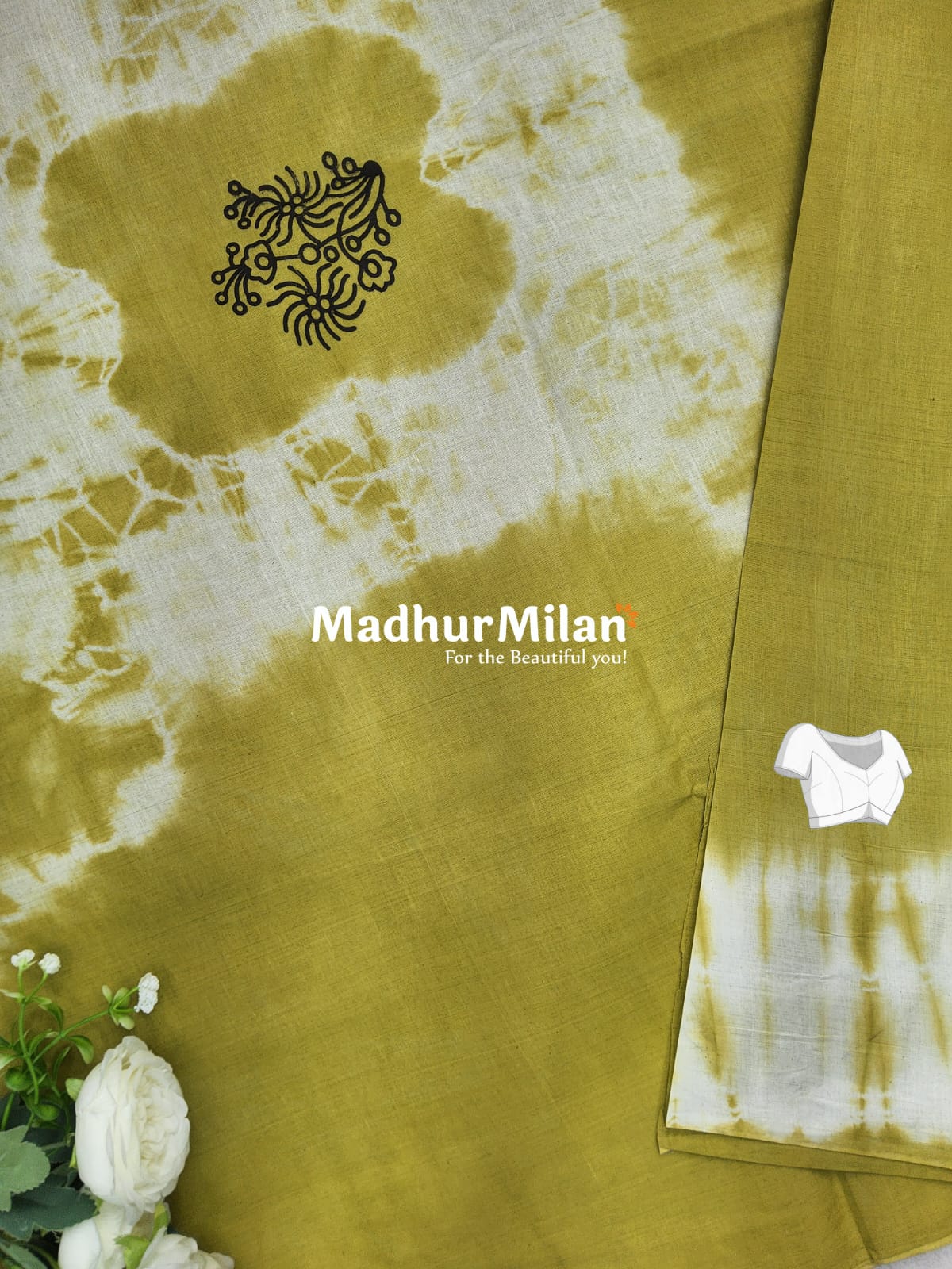 Embrace your beauty with this CHUNADI BLOCK PRINTED COTTON SAREE in Lemon Green – a true embodiment of Madhur Milan's commitment to bringing you exquisite, handcrafted fashion.