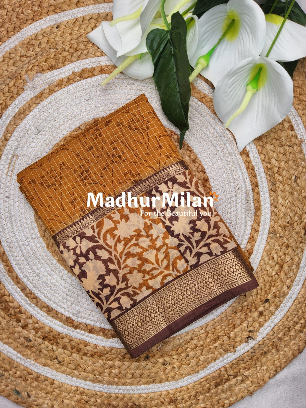 Styling Suggestions: - Pair with a matching or contrasting blouse (blouse piece included) - Accessorize with gold jewelry to complement the saree's golden tones - Ideal for festivals, weddings, formal events, or special occasions