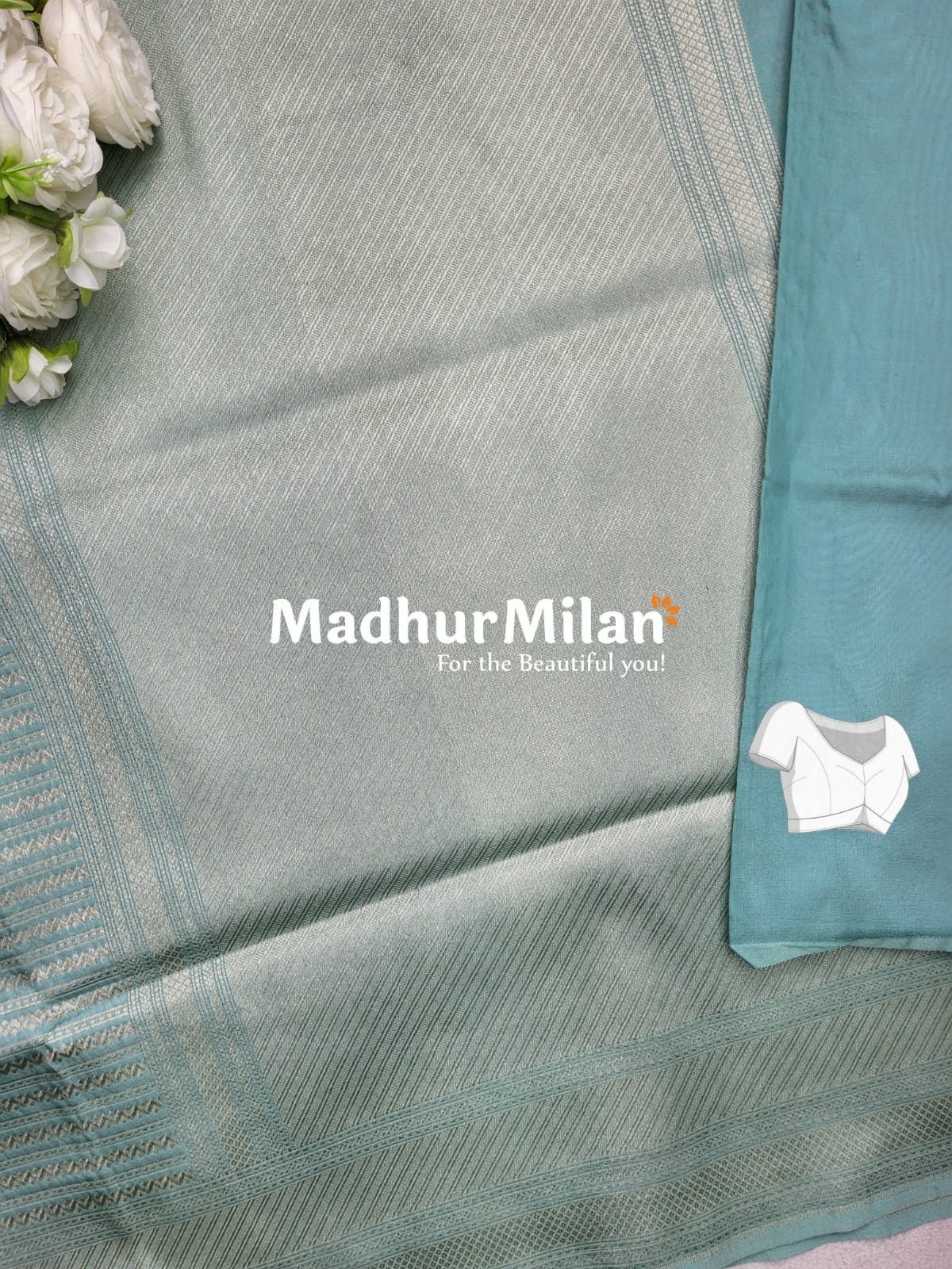 Elevate your ethnic wardrobe with our exquisite BANARASI TANCHOI ZARI WOVEN SAREE in a stunning Turkish blue shade. This masterpiece from Madhur Milan is crafted for the beautiful you!