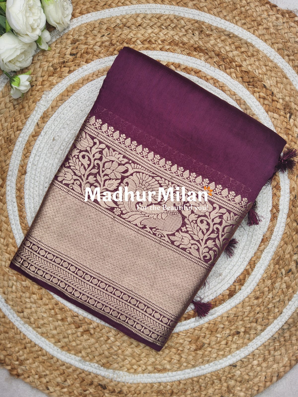 Description: Elevate your ethnic wardrobe with our exquisite DISPUR SILK SAREE, featuring a stunning 10-inch border in a rich wine color. This luxurious saree is a perfect blend of tradition and elegance, ideal for special occasions and festive celebrations.