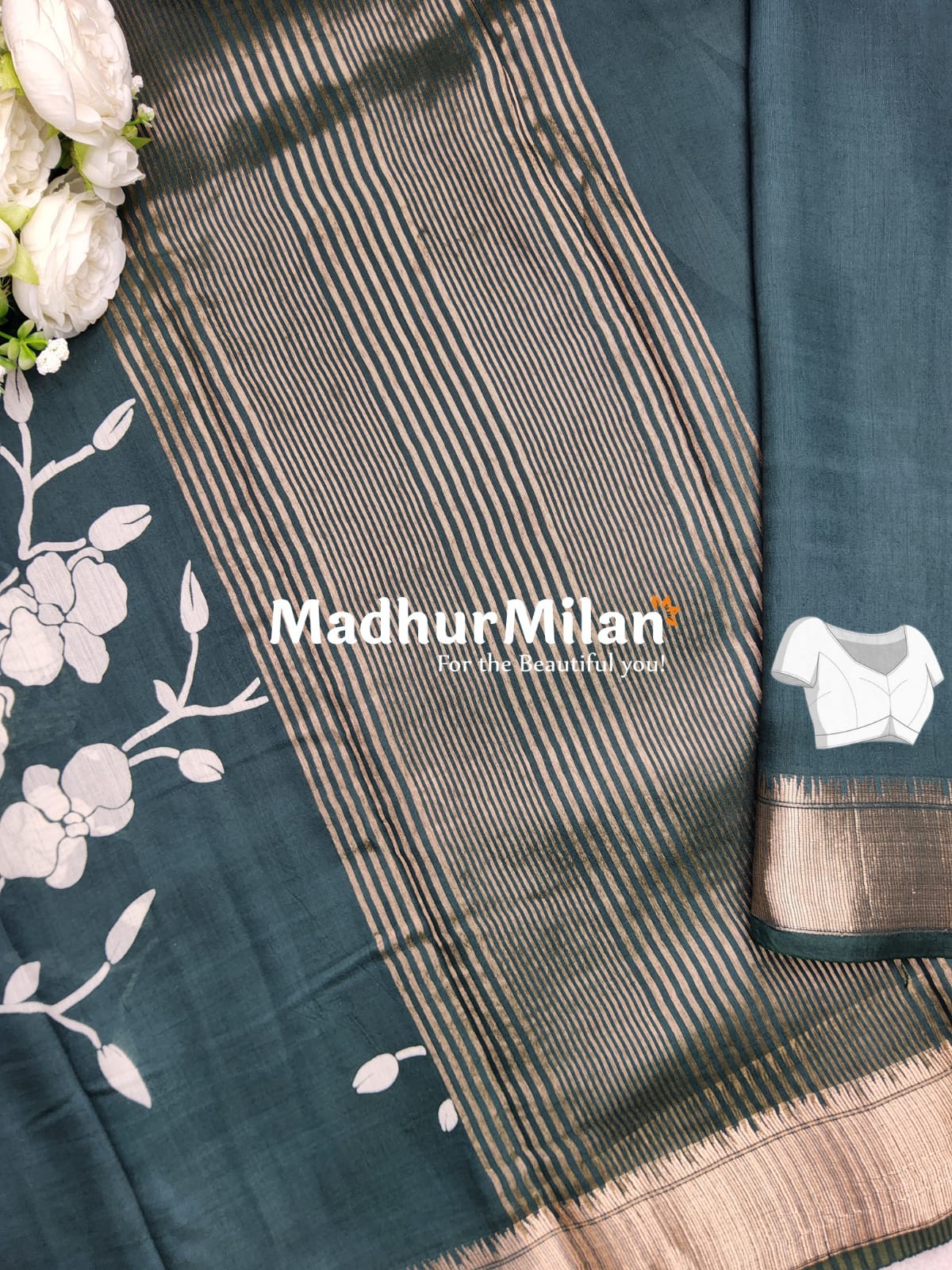 Description: Elevate your wardrobe with our exquisite FLORAL PRINT ASSAM SILK WHITE DUSTY GREEN saree from Madhur Milan. This stunning piece combines timeless elegance with contemporary design, perfect for those who appreciate the finer things in life.