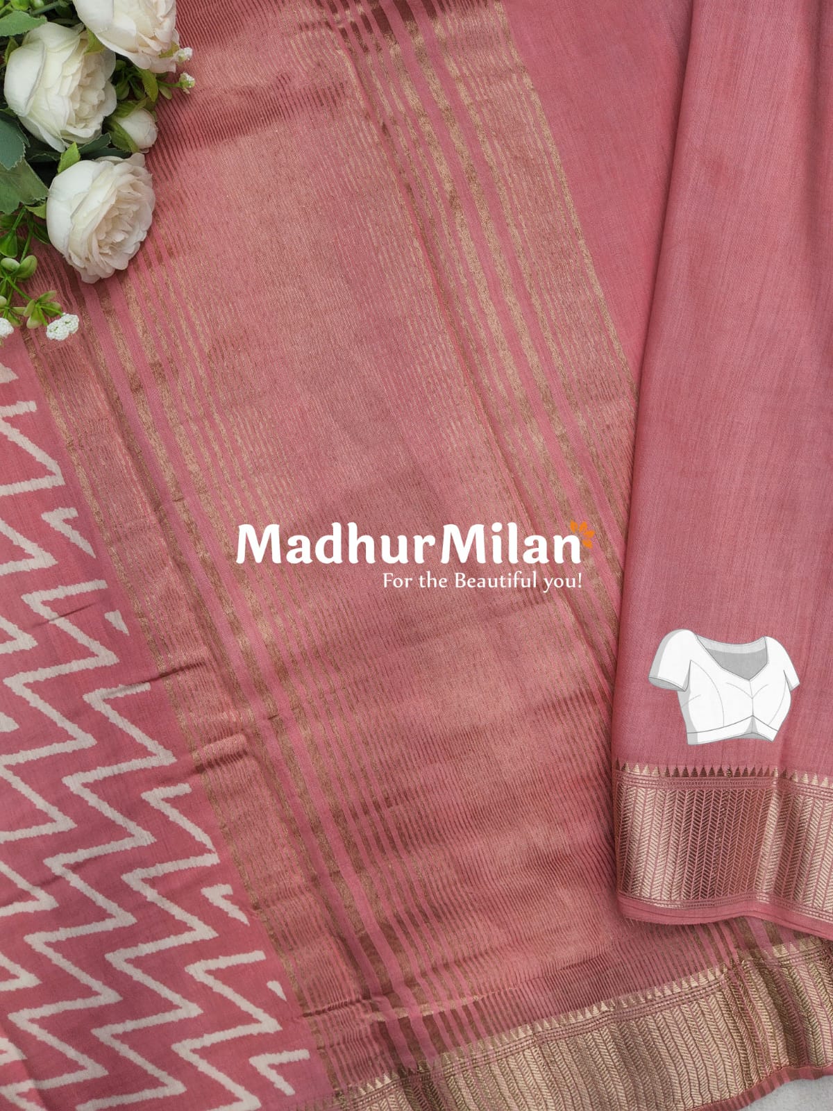 Description: Elevate your ethnic wardrobe with this exquisite Zig Zag Print Assam Silk Saree in a beautiful peach hue. Crafted by Madhur Milan, this saree is designed "For the Beautiful you!"