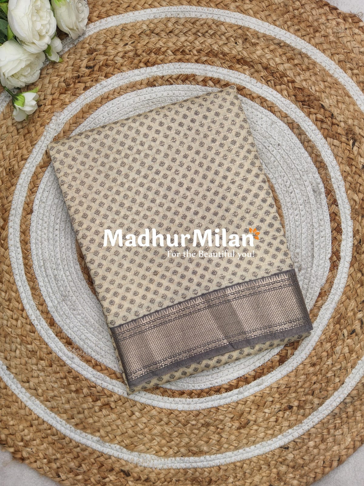 The ASSAM SILK PRINTED SAREE DUSTY GREY by Madhur Milan is more than just a garment; it's a celebration of craftsmanship and elegance.