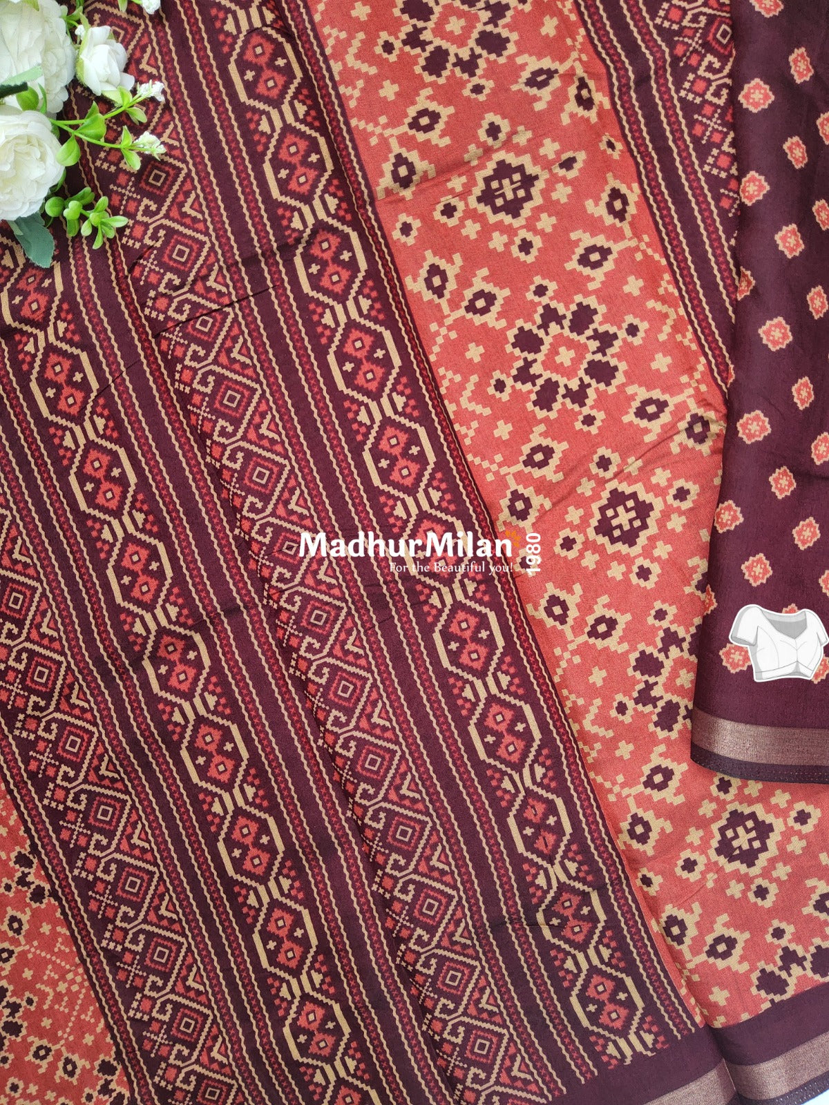 Description: Immerse yourself in the rich heritage of Indian craftsmanship with our exquisite BAGRU PRINT KAJU SILK SAREE in a stunning rust color.