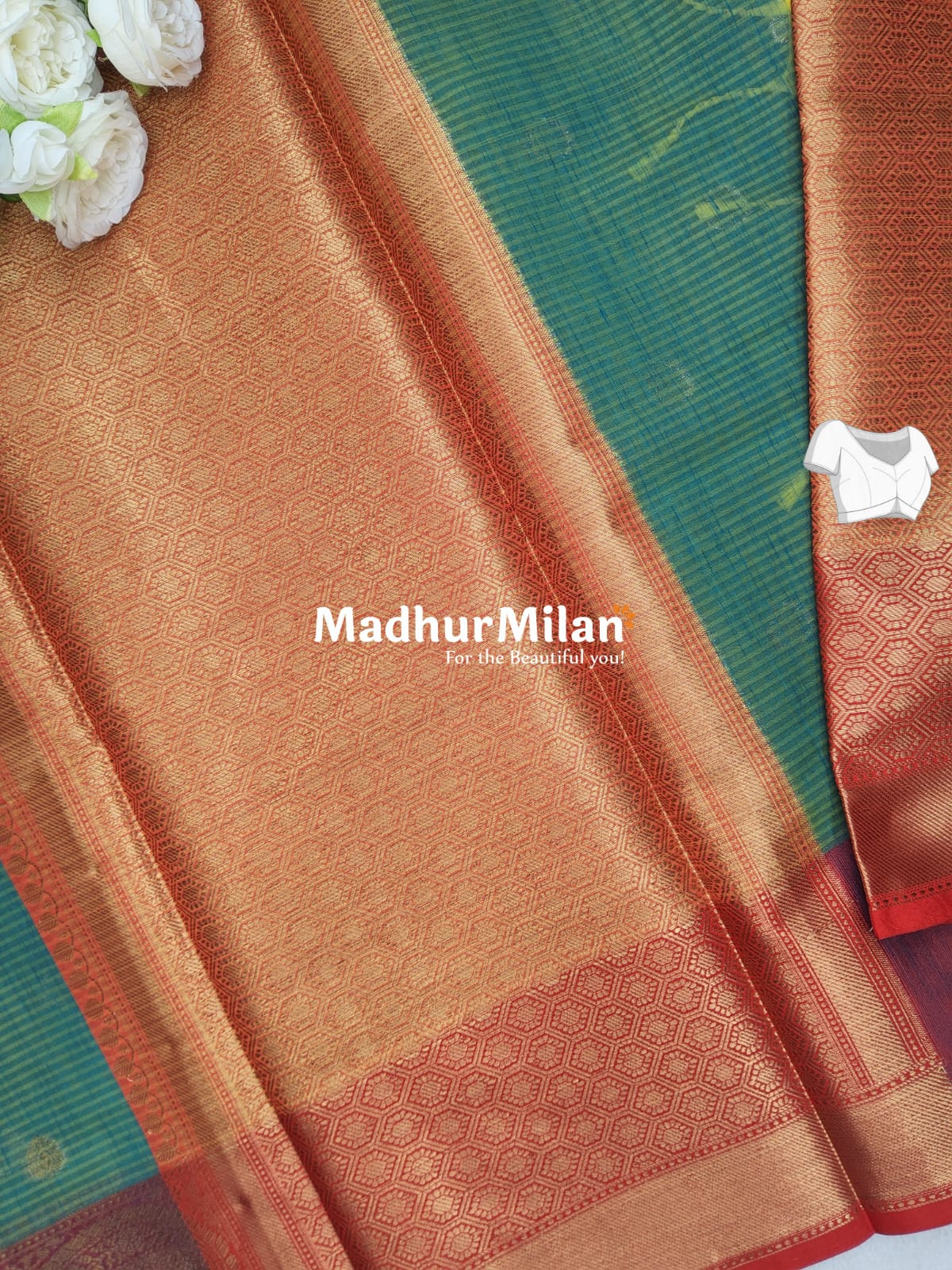 Product Description: BANARASI KORA SILK SAREE GREEN Elevate your ethnic wardrobe with this exquisite Banarasi Kora Silk Saree in a stunning green hue. This masterpiece from Madhur Milan is a perfect blend of tradition and elegance, designed "For the Beautiful you!"