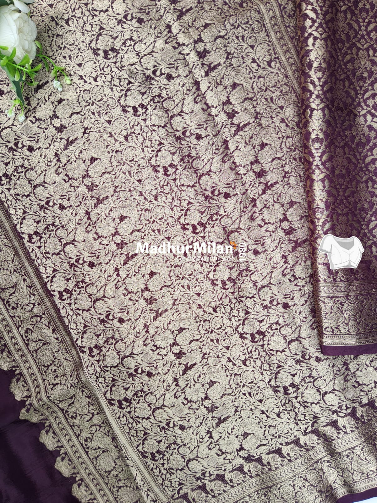 Indulge in the opulence of our exquisite BANARASI RUSSIAN CREPE SAREE in a rich wine hue.