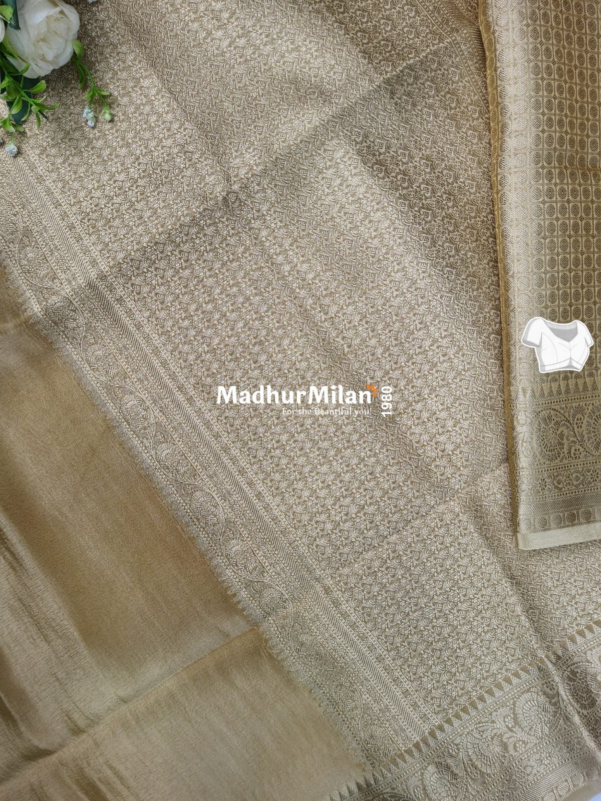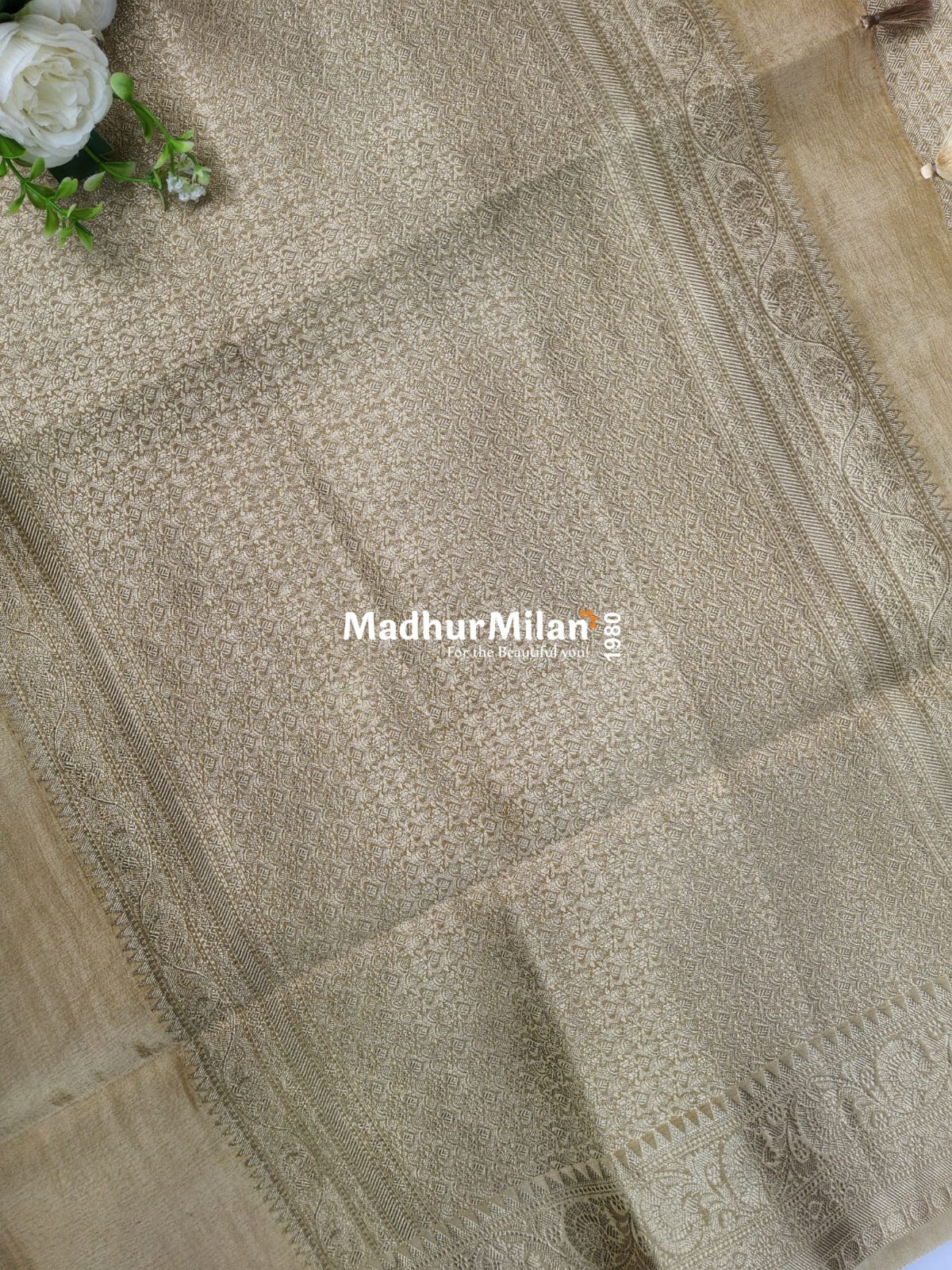 Elevate your ethnic wardrobe with this exquisite Banarasi Tissue Organza Saree in a stunning gold hue.