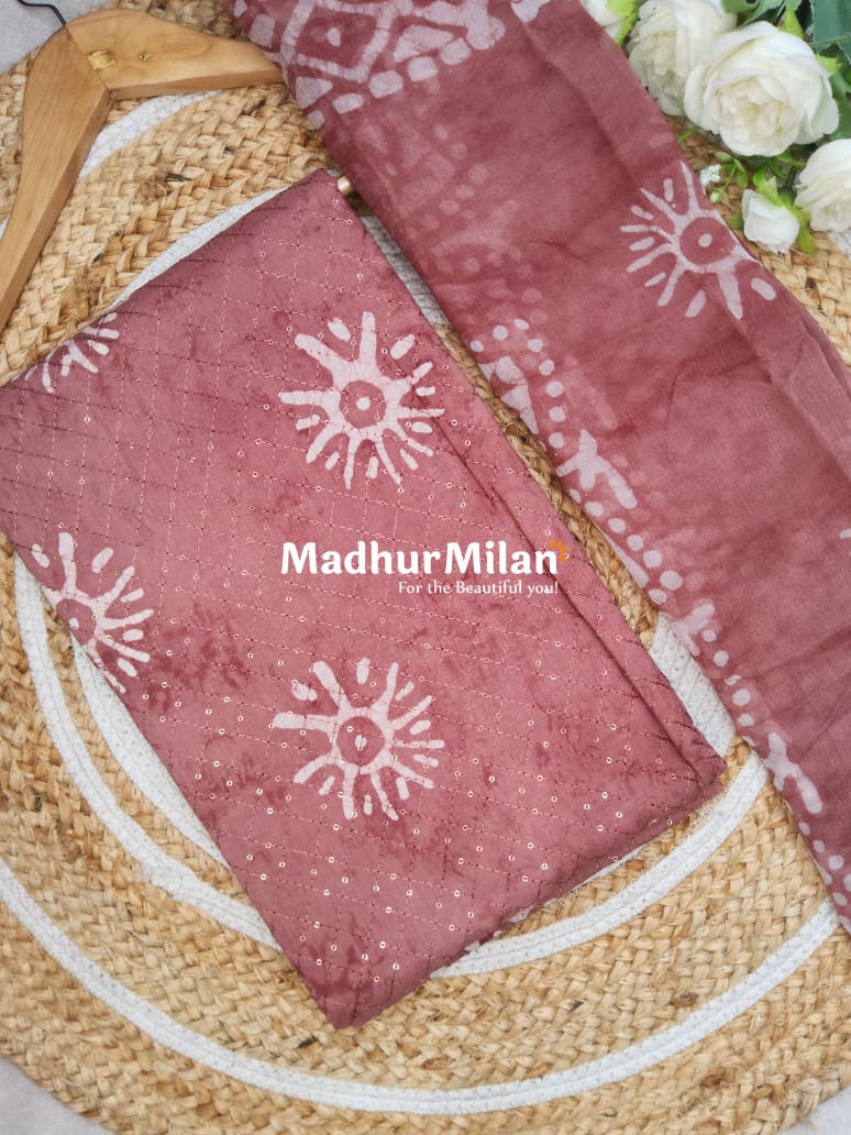 Make a statement with this beautiful BATIC SEQUENCE WORK UNSTITCHED SALWAR SUIT ONION from Madhur Milan - "For the Beautiful you!"