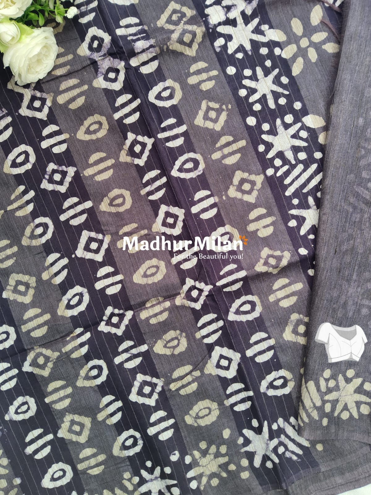 Elevate your ethnic wardrobe with our exquisite Bhagalpuri Batik Print Saree in a rich Blackberry hue.