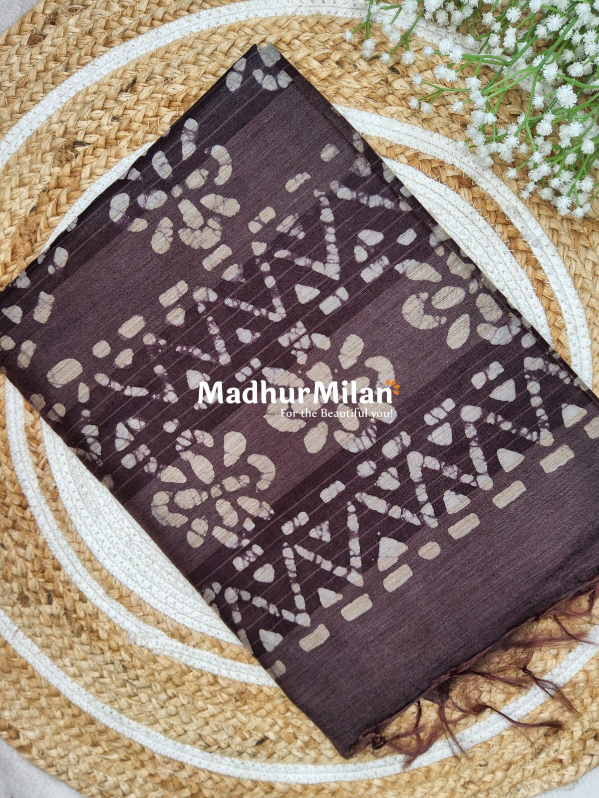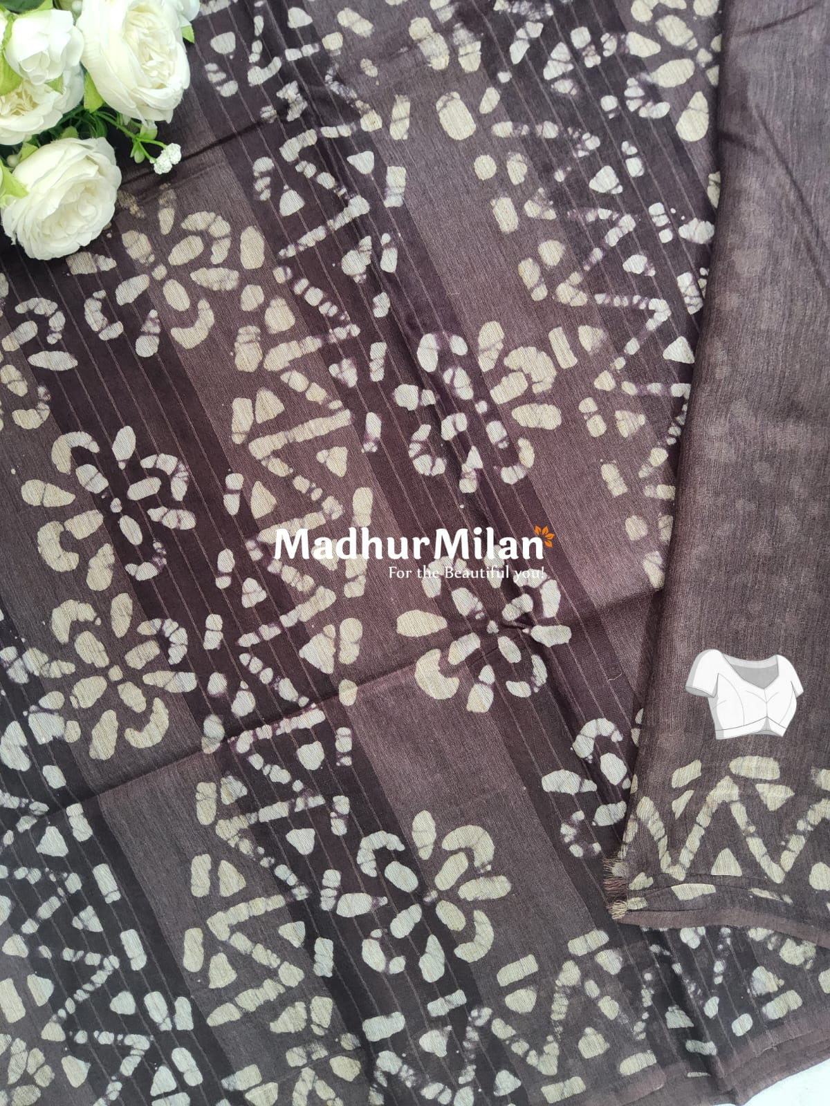 Experience the perfect fusion of comfort and style with this stunning Bhagalpuri Batik Print Saree in Brown.