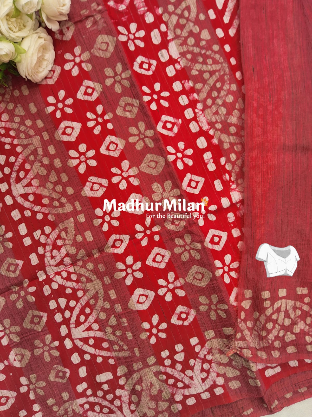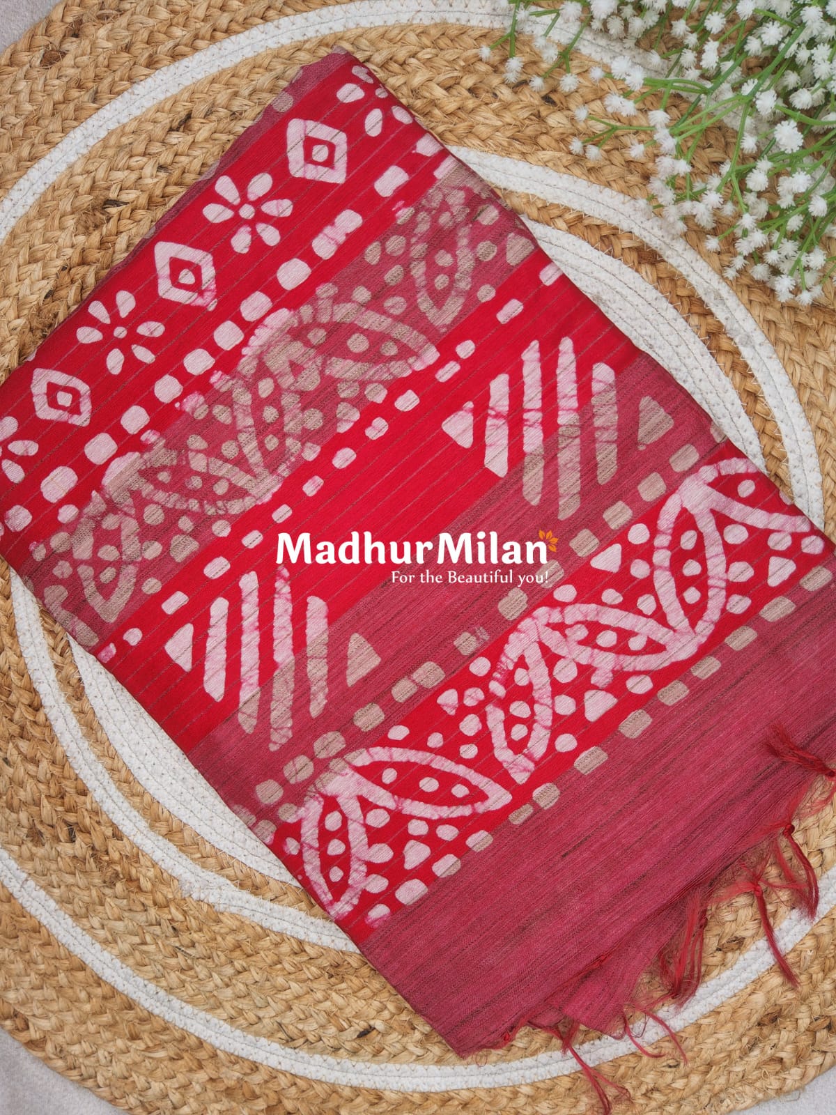 Description: Elevate your ethnic wardrobe with this stunning Bhagalpuri Batik Print Saree in a vibrant pink hue.
