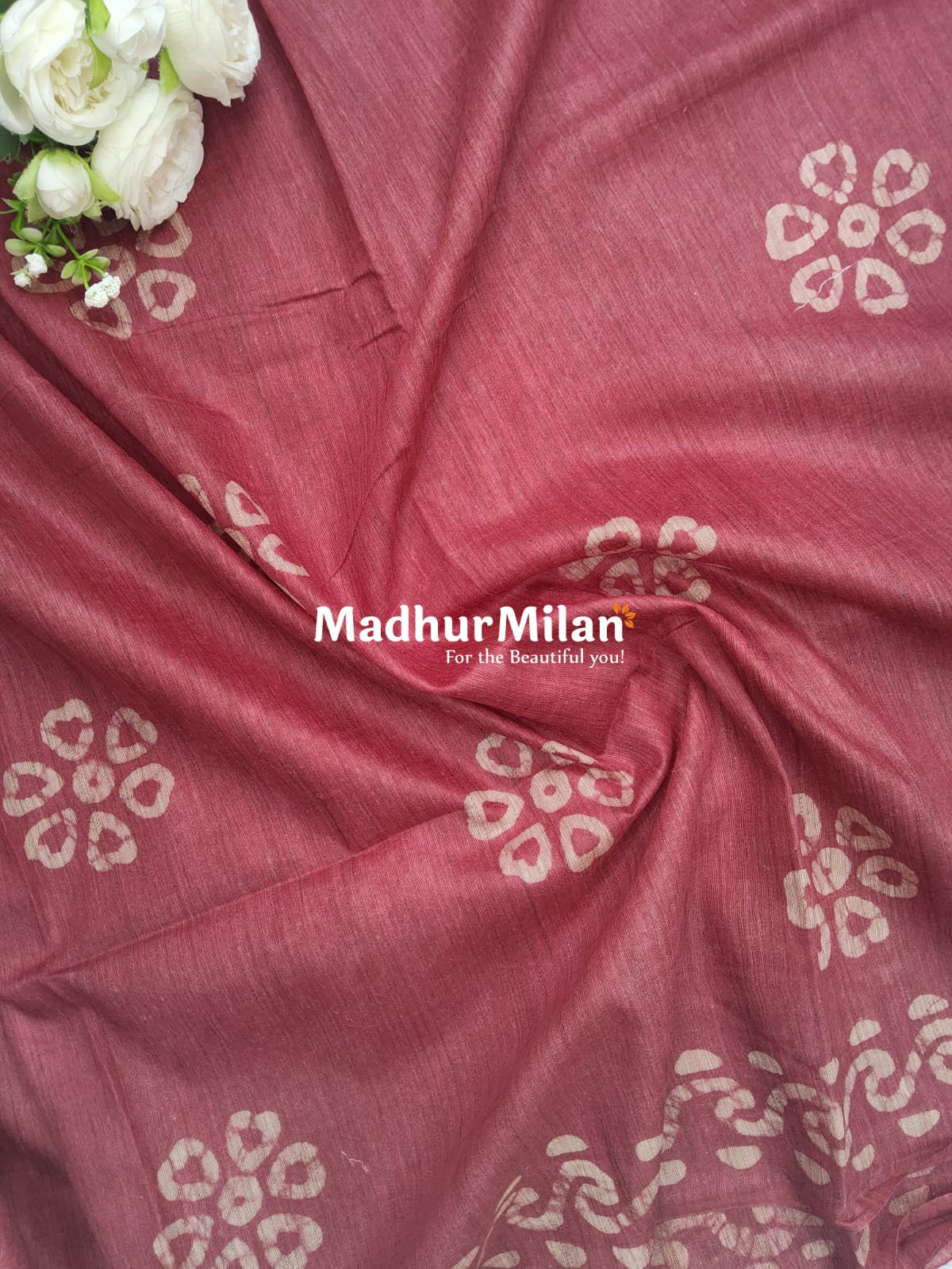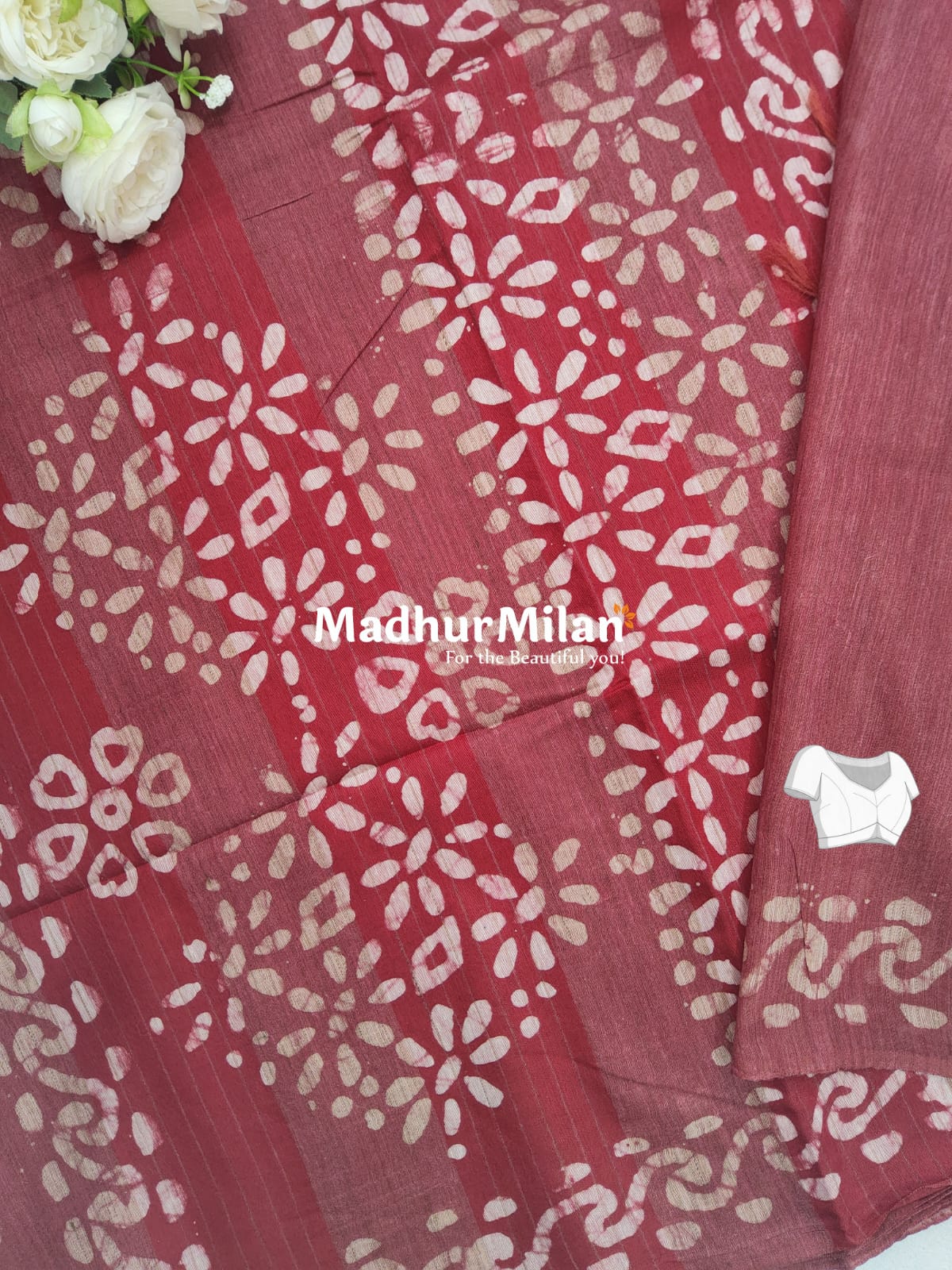 Perfect for both traditional and modern styling, this Bhagalpuri Batik Print Saree in red is a versatile addition to any wardrobe.