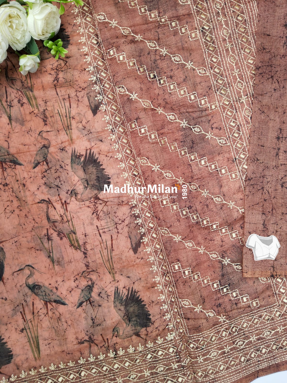 Perfect for both festive occasions and formal events, this Chanderi Flamingo Embroidery Work Saree is a testament to the artistry of Indian craftsmanship.