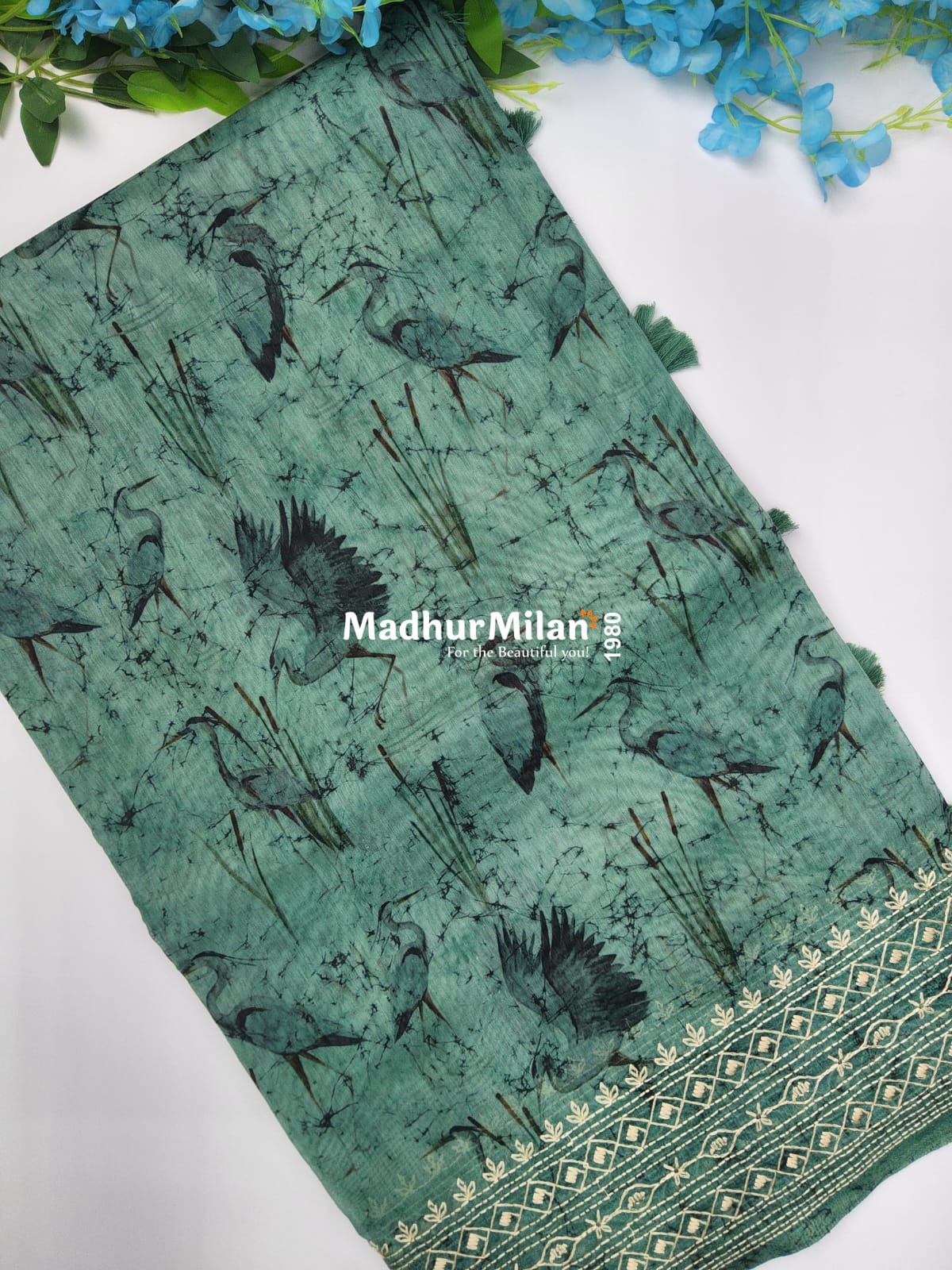 This Chanderi Flamingo Embroidery Work Saree is perfect for special occasions, festive celebrations, or when you want to make a sophisticated style statement.