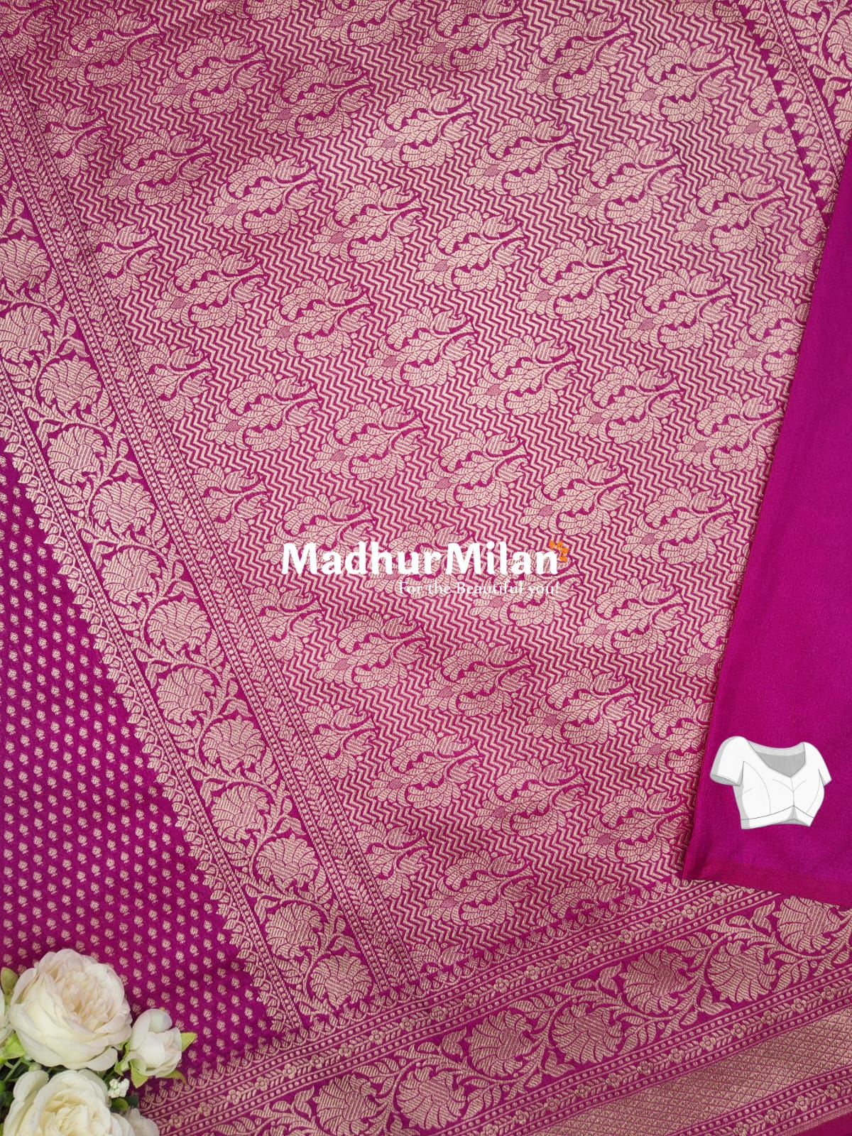 - Border: Wide border with intricate silver zari weaving, showcasing traditional Banarasi motifs.