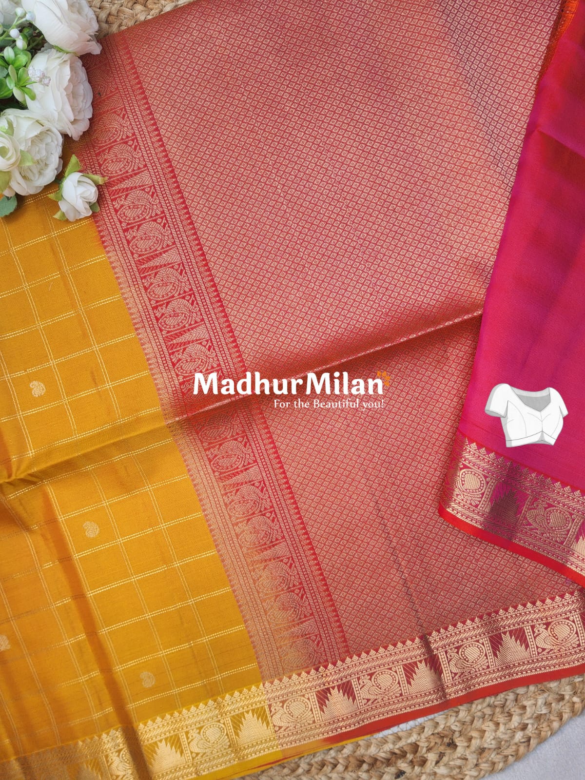 Product Name: CHECKS BUTTA BORDER SOFT SILK SAREE YELLOW PEACH