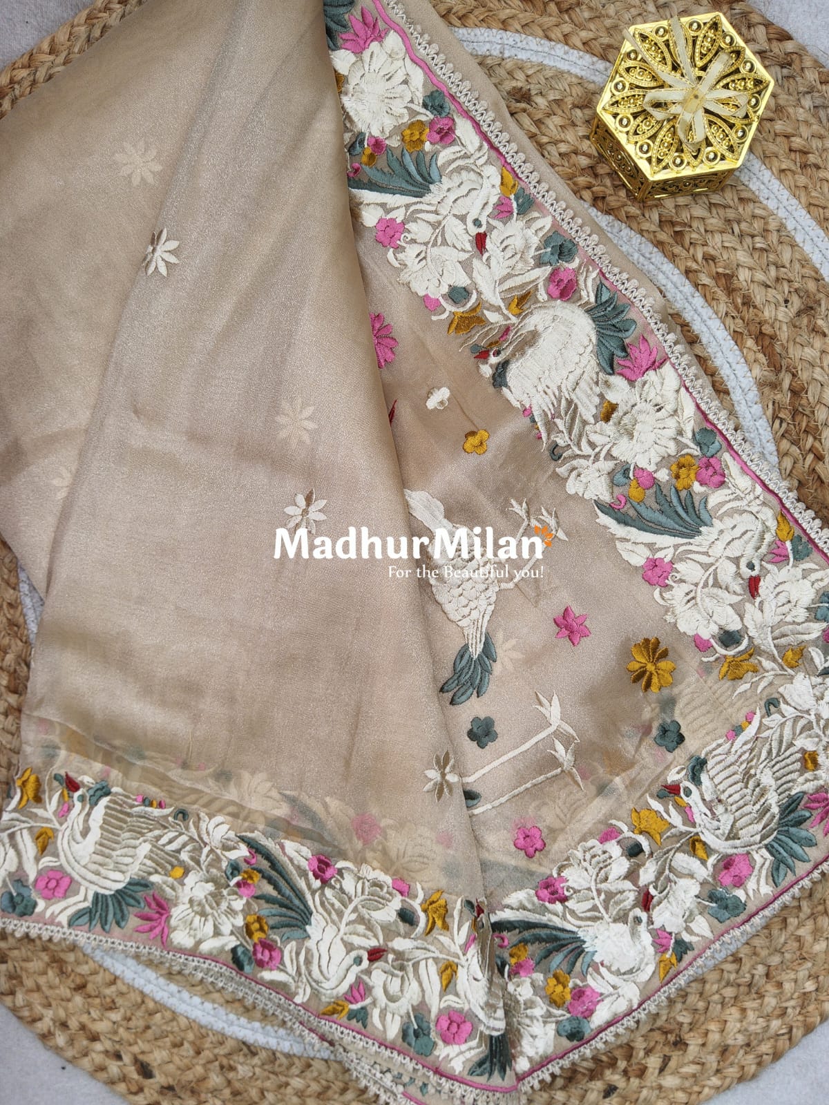 Product Name: EMBROIDERY BORDER TISSUE ORGANZA SAREE DUSTY GOLD