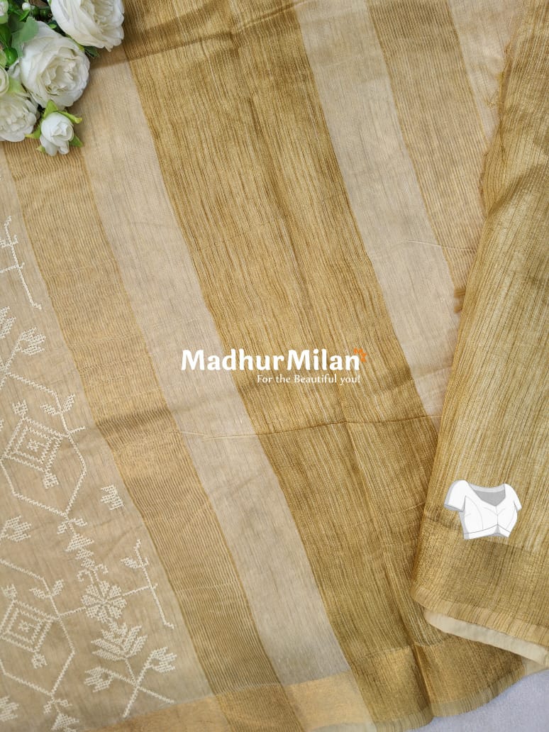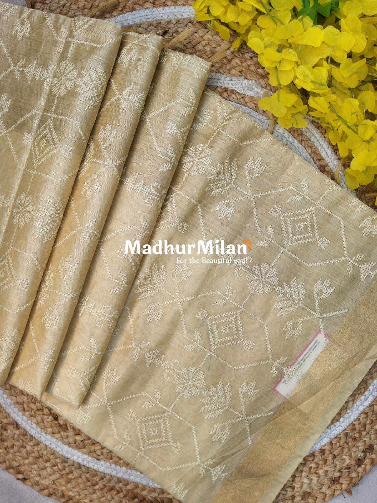 Elevate your ethnic wardrobe with our exquisite Embroidery Kora Silk Cotton Saree in a stunning yellow hue. This masterpiece from Madhur Milan is designed "For the Beautiful you!"