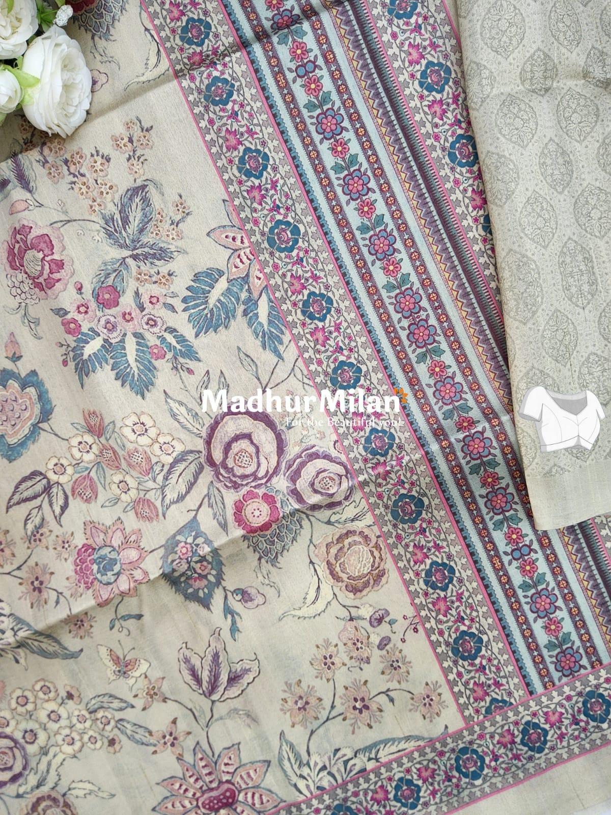 Add this stunning Floral Digital Semi Tusser Silk Saree to your collection and experience the perfect fusion of tradition and modernity.