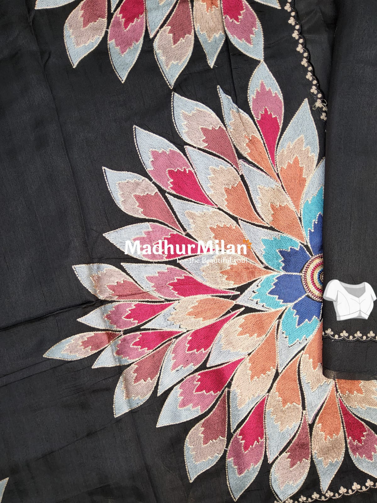 Description: Elevate your ethnic wear collection with the exquisite FLOWER BEAUTY RAW SILK SAREE BLACK from Madhur Milan.