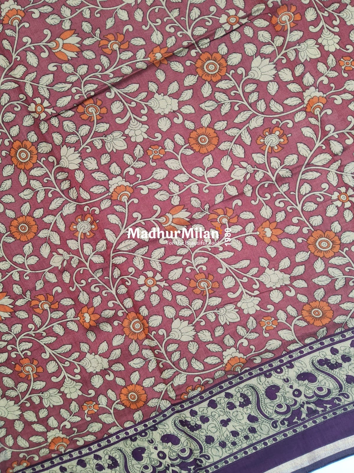 Product Description: KALAMKARI PRINT KAJU SILK SAREE DUSTY BRICK