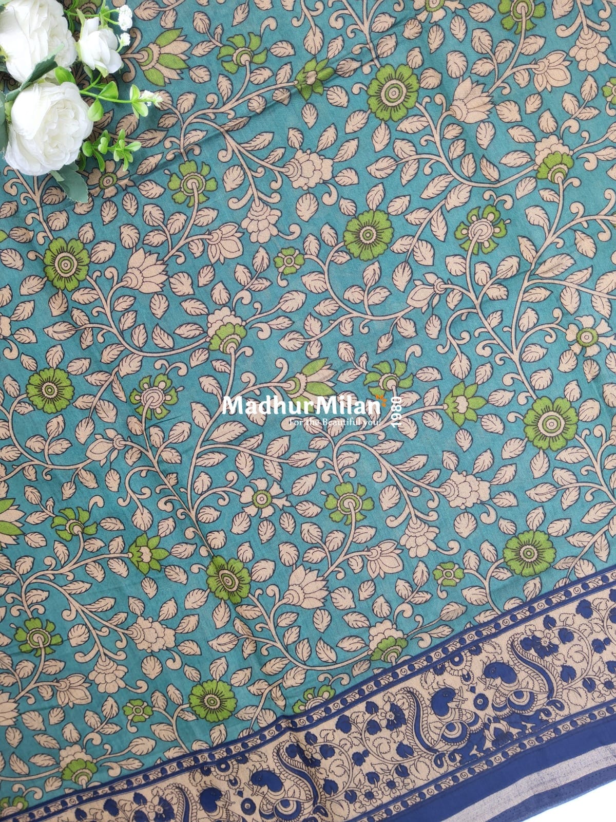 Perfect For: This KALAMKARI PRINT KAJU SILK SAREE RAMA is ideal for special occasions, festivals, weddings, and formal events where you want to make a lasting impression with your elegant and culturally rich attire.