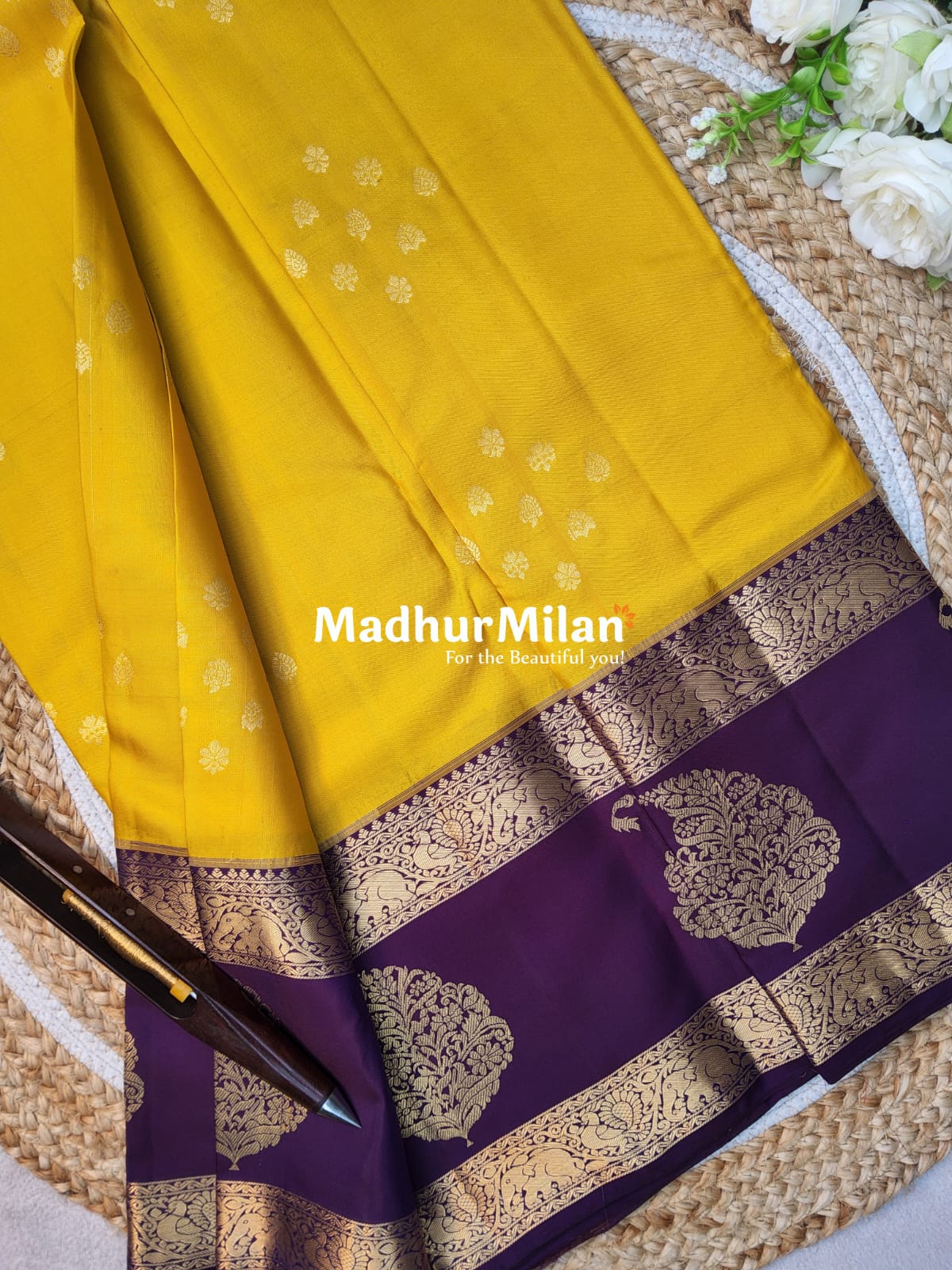 Product Name: KANCHI BUTTA BENTEX BORDER SAREE YELLOW WINE
