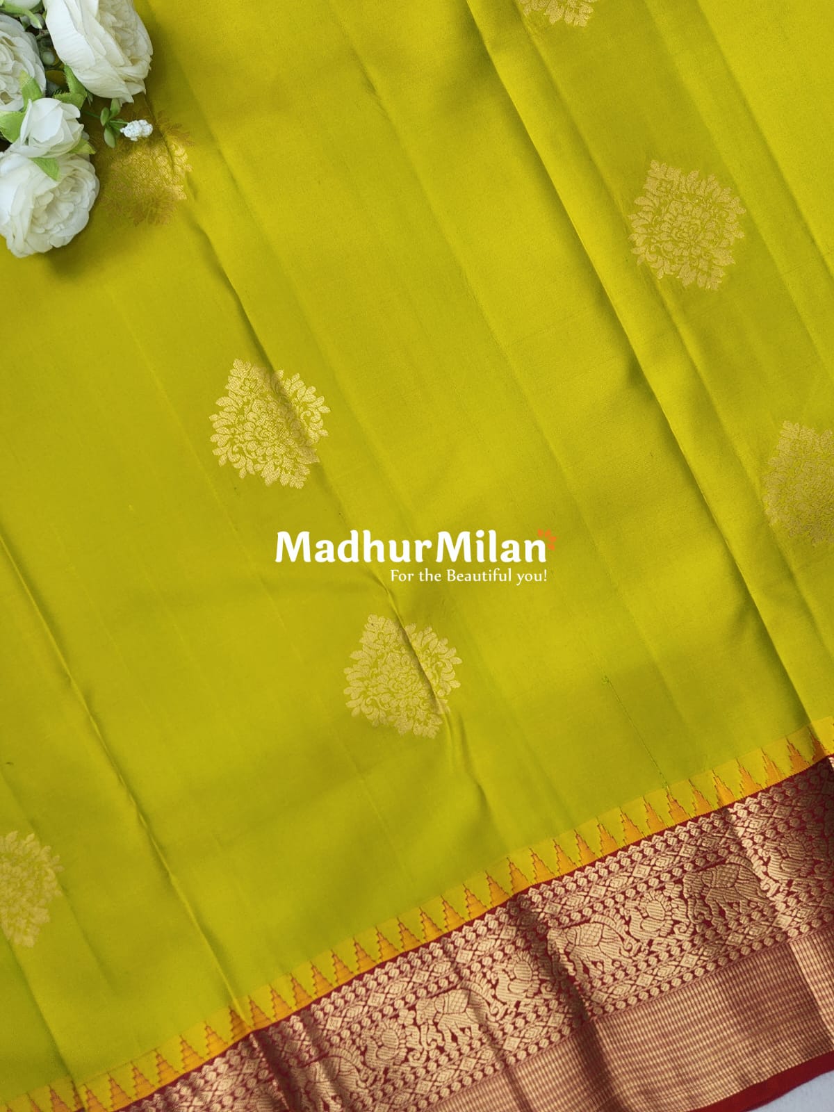 Description: Elevate your ethnic wardrobe with this exquisite Kanchi Butta Border Saree from Madhur Milan. This stunning saree seamlessly blends traditional craftsmanship with contemporary style, making it perfect for both festive occasions and formal events.