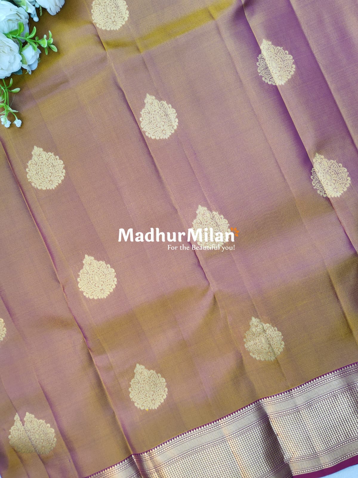 Kanchipuram weave Make a statement at your next event with this breathtaking KANCHI BUTTA BORDER SAREE MUSTARD MAROON.