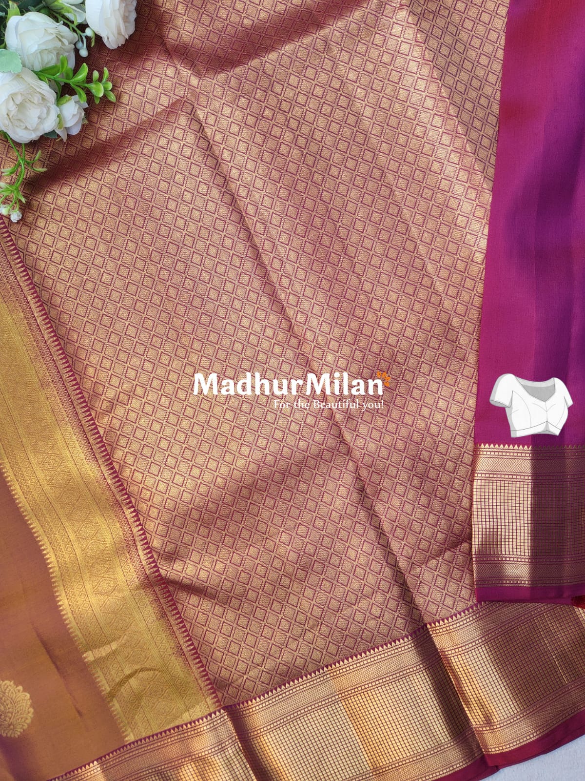 Introducing the KANCHI BUTTA BORDER SAREE MUSTARD MAROON - a stunning masterpiece from Madhur Milan that embodies elegance and tradition.